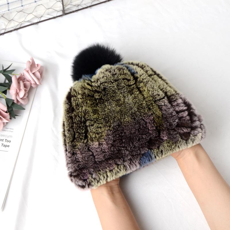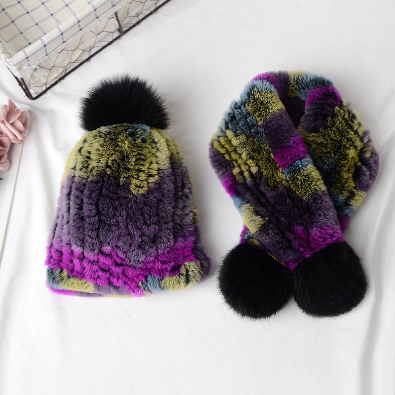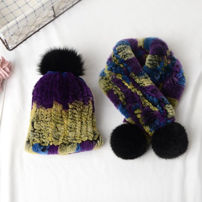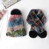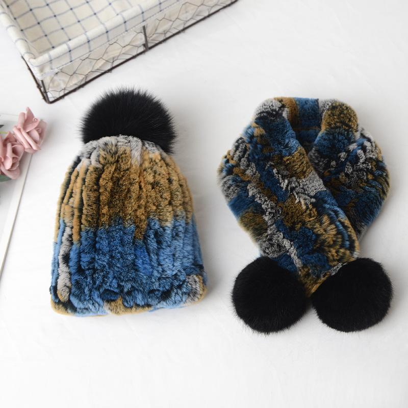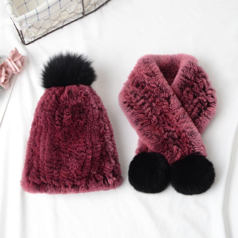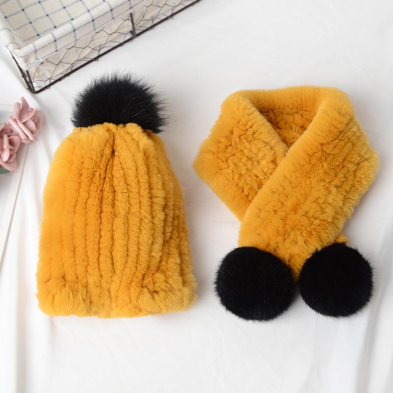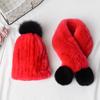 1-10 Sombrero bufanda de bola de zorro tejido de piel de conejo Rex cuello para bebé conjunto de dos piezas para niños y niñas