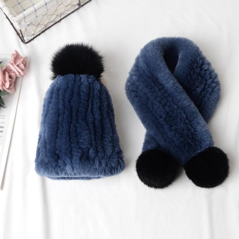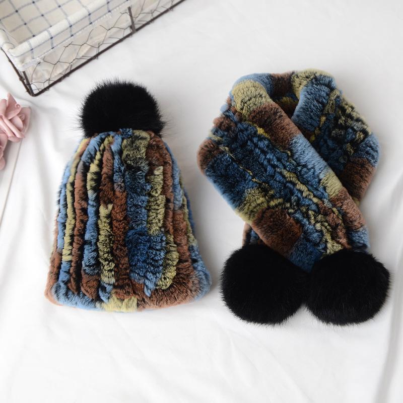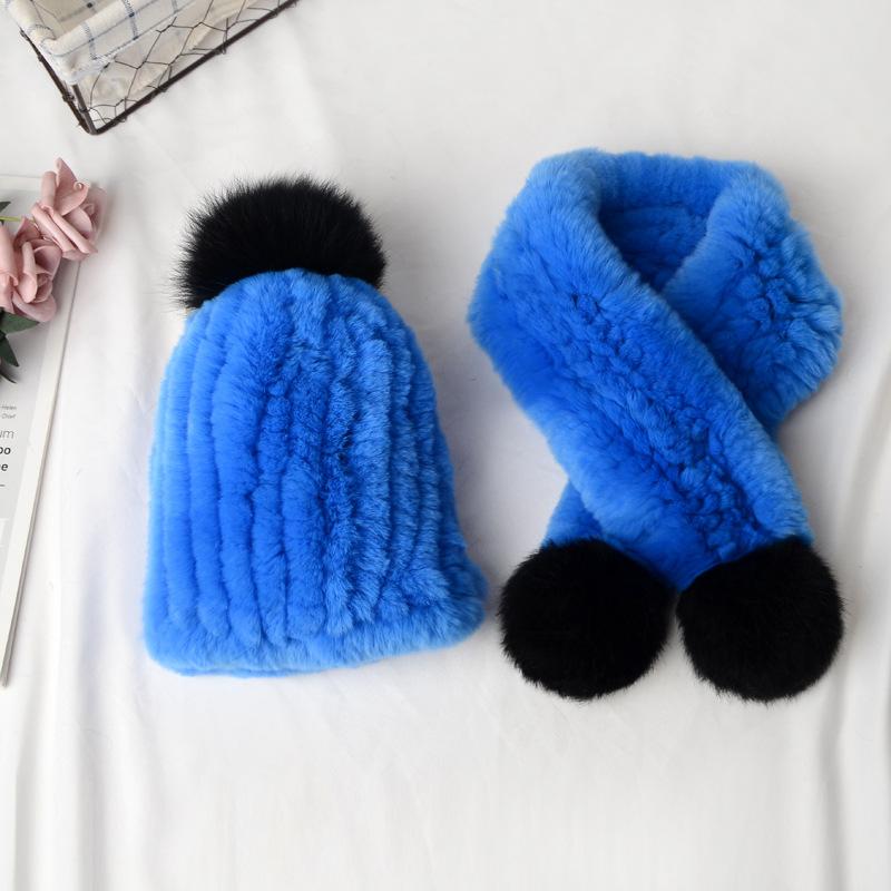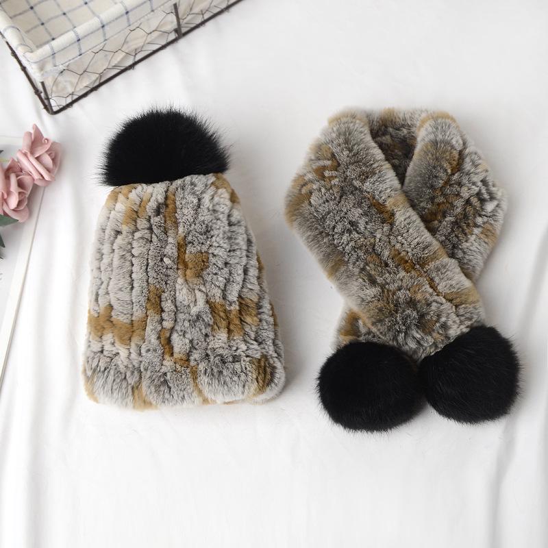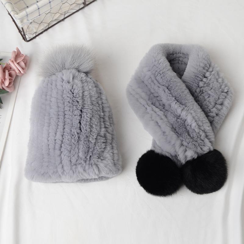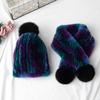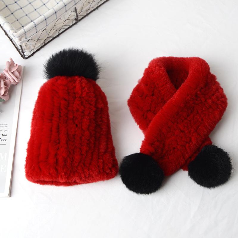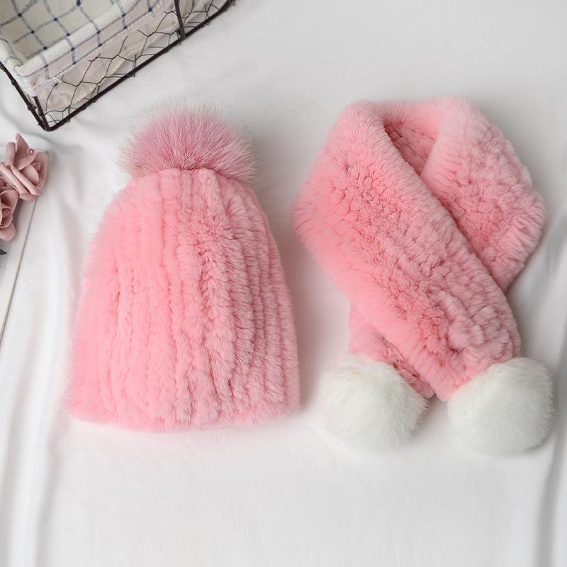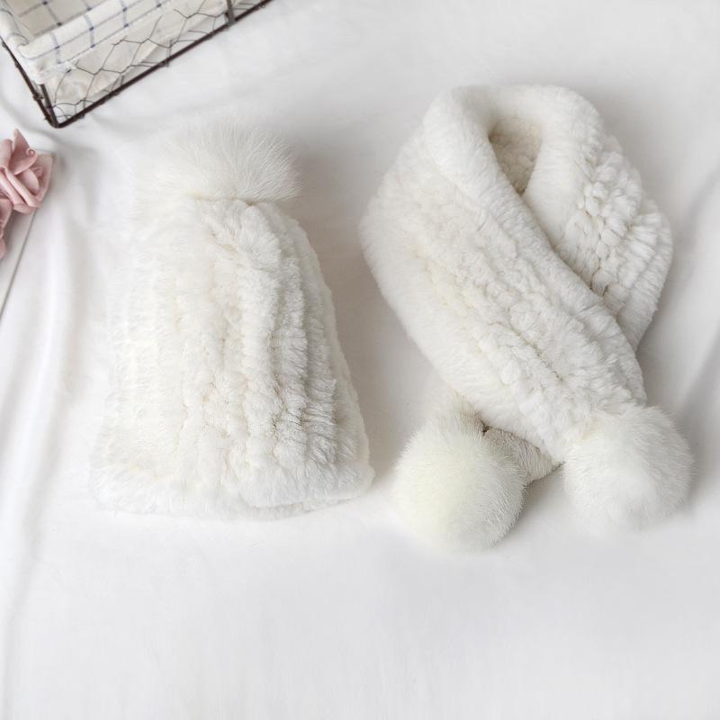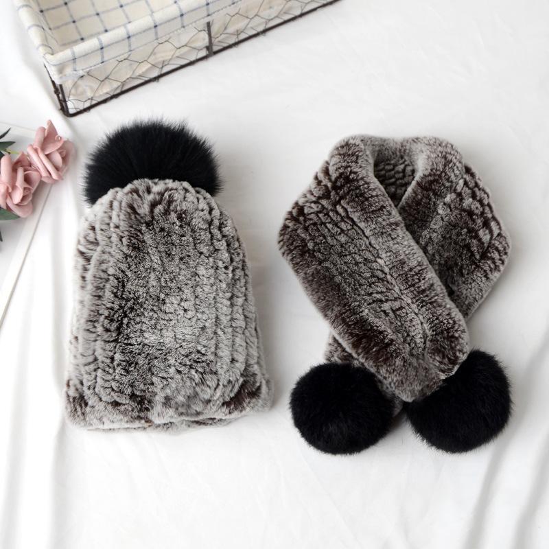 Conjunto de dos piezas para niños y niñas, con gorro y bufanda de piel de conejo Rex, tejido de zorro y bola, para bebé, 1-10 unidades
