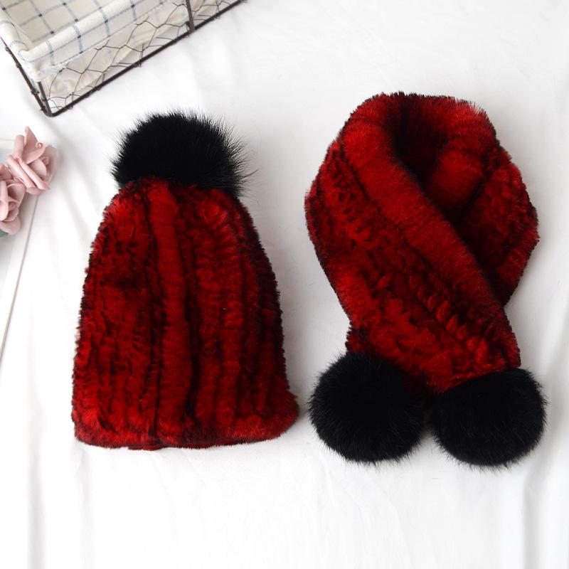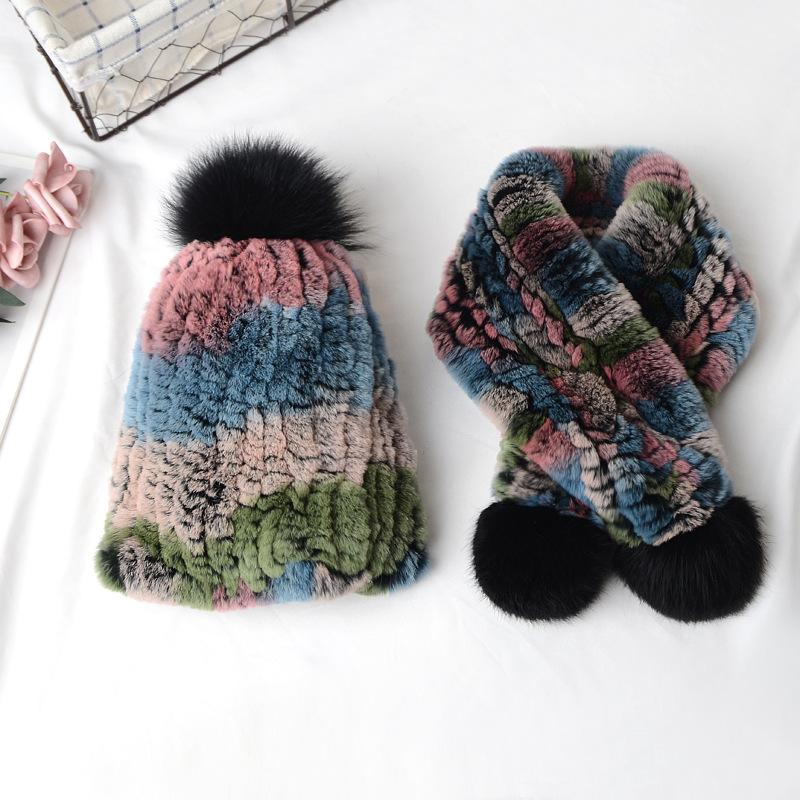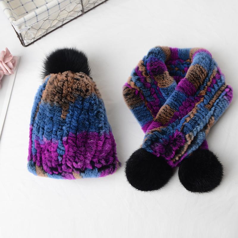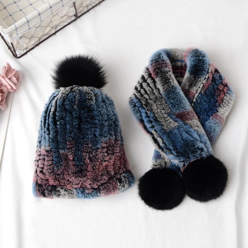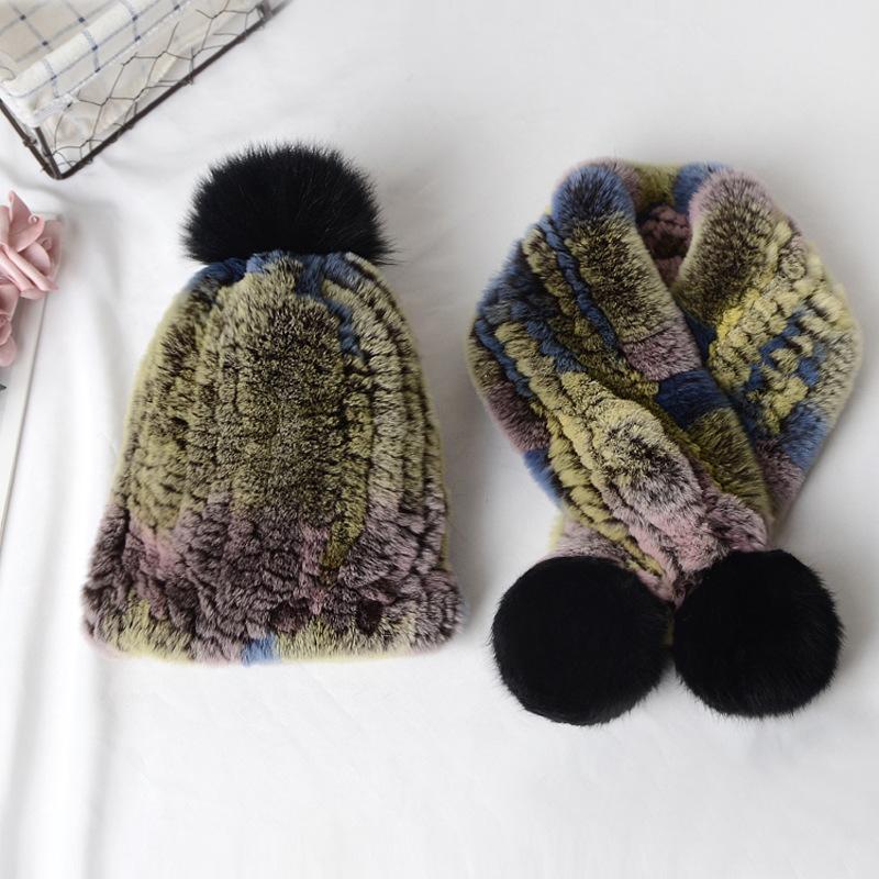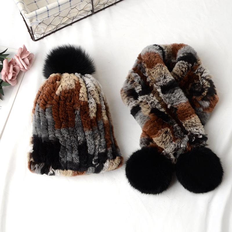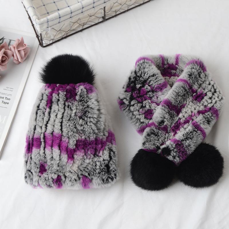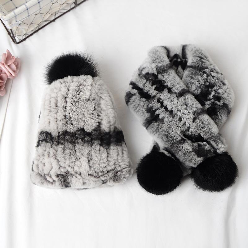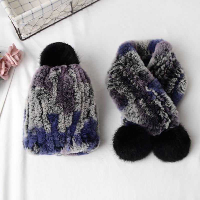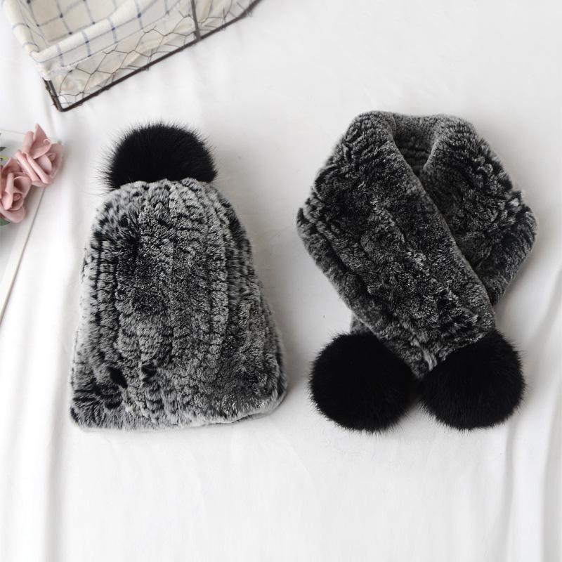 Conjunto de dos piezas para niños y niñas, con gorro y bufanda de piel de conejo Rex, tejido de zorro y bola, para bebé, 1-10 unidades