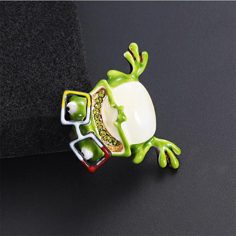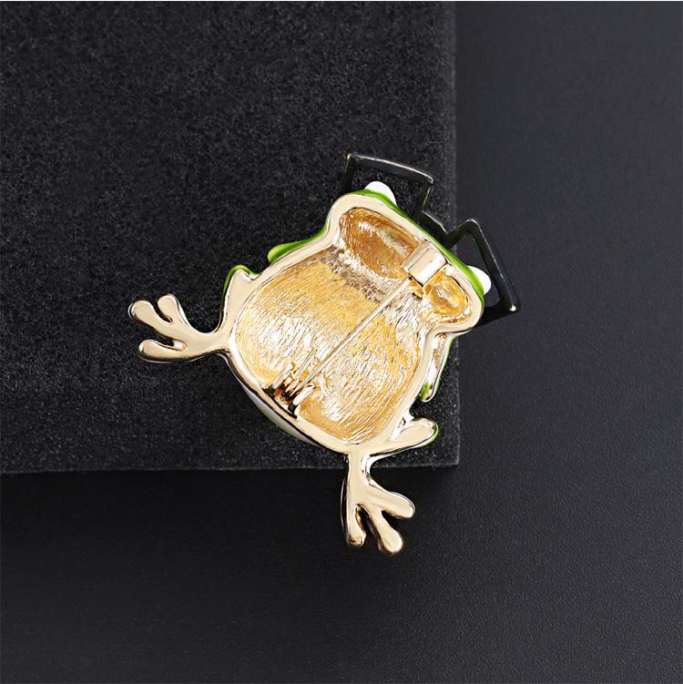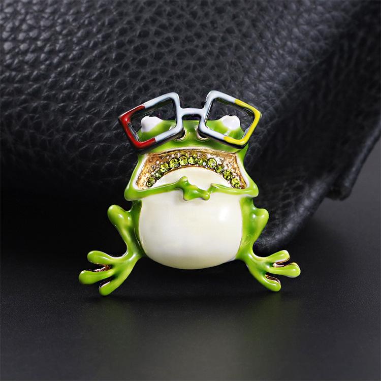 Lindo Broche de Rana con Lentes Caricatura Aleación Corsage Accesorios Fijos para Ropa Pin Joyería Combinable