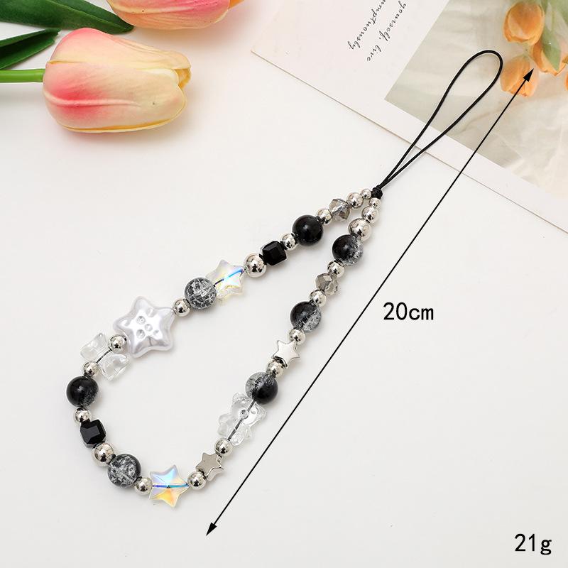 Nuevo cordón para teléfono móvil, acrílico, estrella de cinco puntas, cadena con cuentas para teléfono móvil, funda para teléfono móvil, llavero, colgante, cadena para cámara CCD