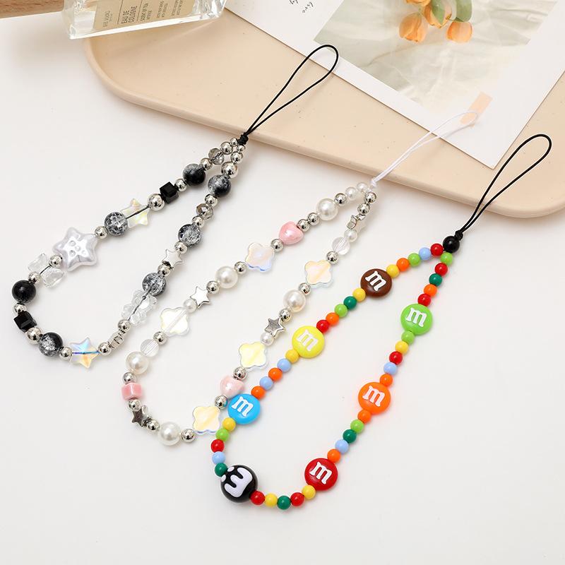 Nueva cadena para teléfono móvil con cuentas de lazo, colgante para funda de móvil, correa de muñeca anticaída y antipérdida, cordón corto para teléfono móvil