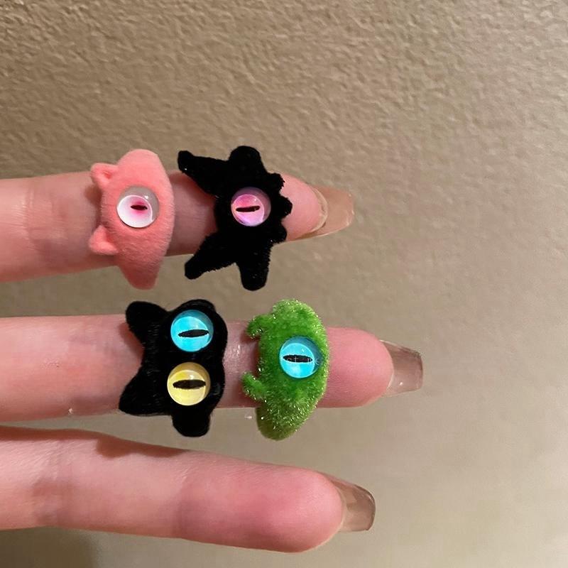 Black Pink Ring 3199, Little pink pig ring 3202, Green Monster Ring 3204, Big Eye Ring 3200