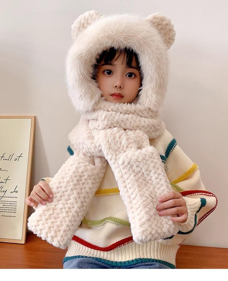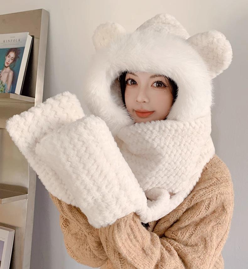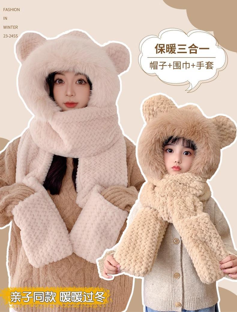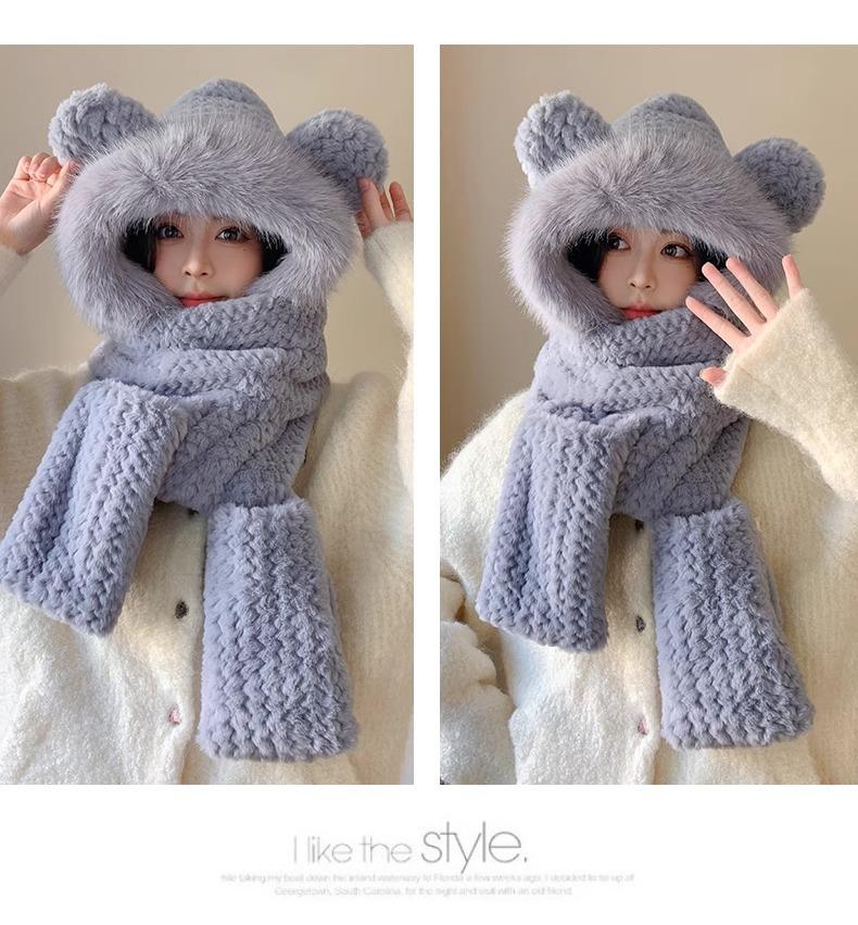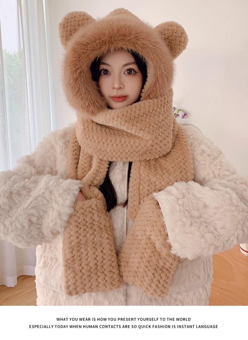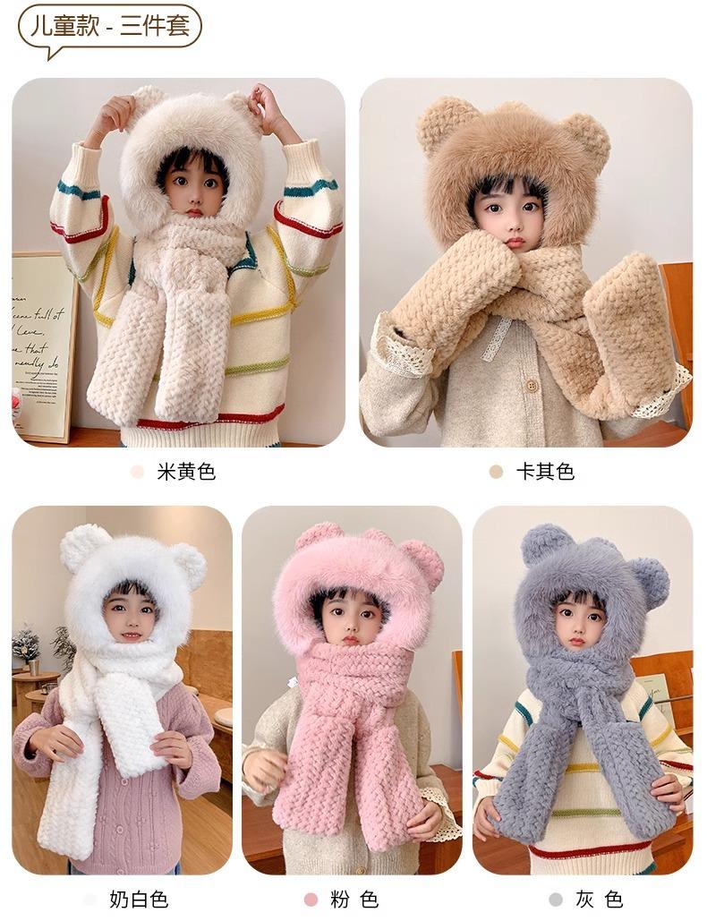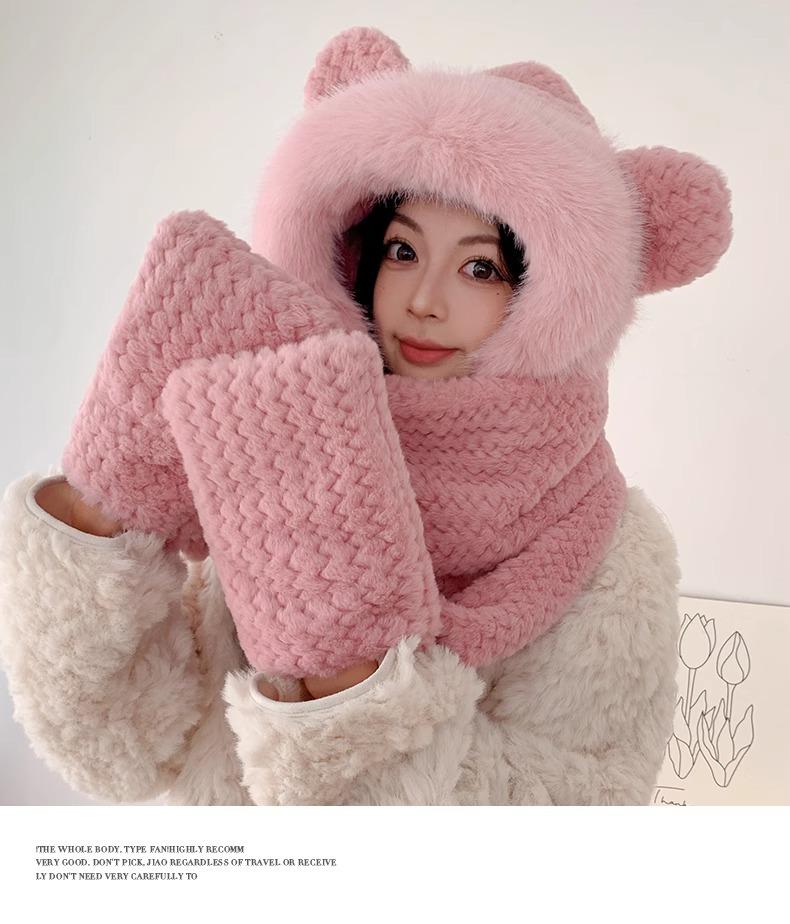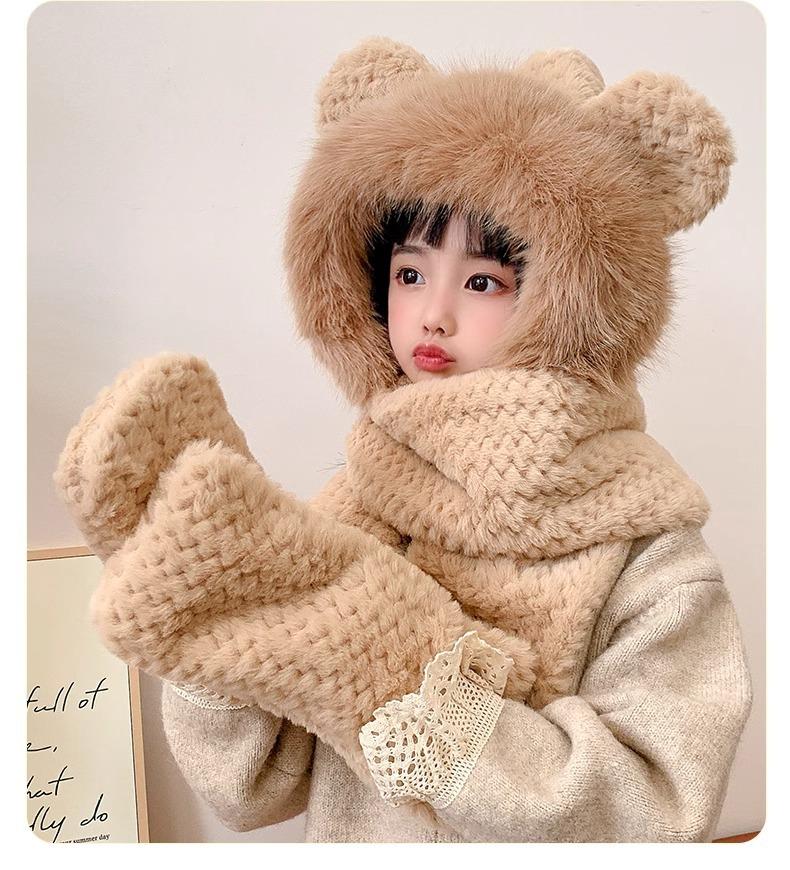 Sombrero de Felpa de Zorro Peludo Lindo para Niños Bufanda Guantes Un Conjunto de Tres Piezas para Invierno para Mujer Cálido