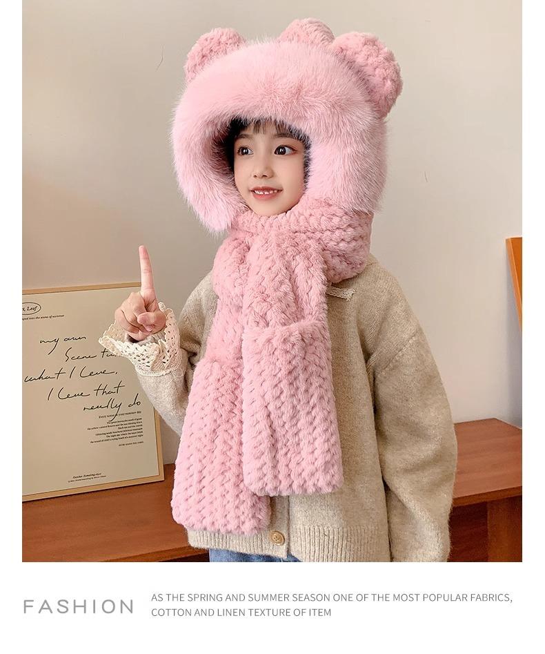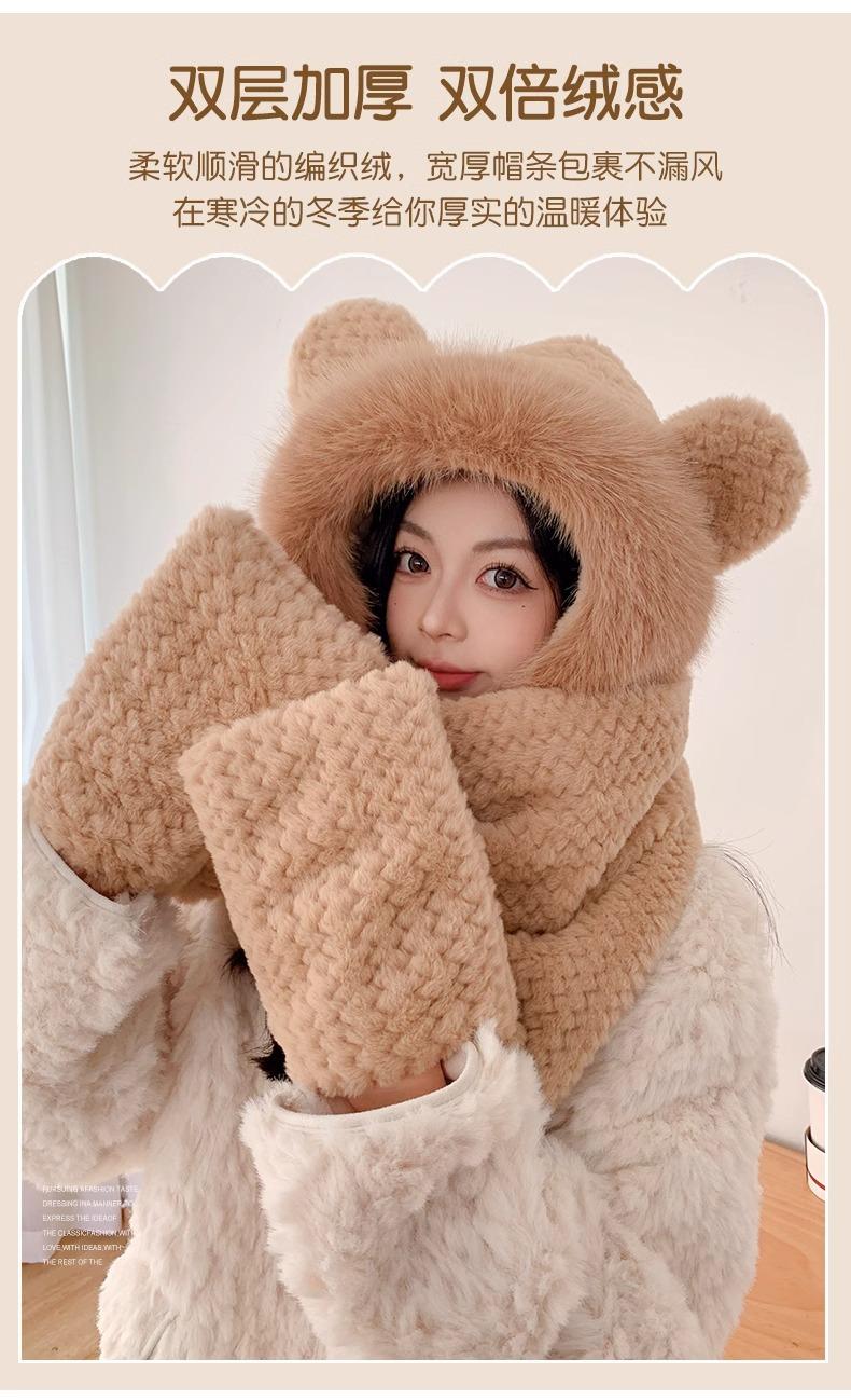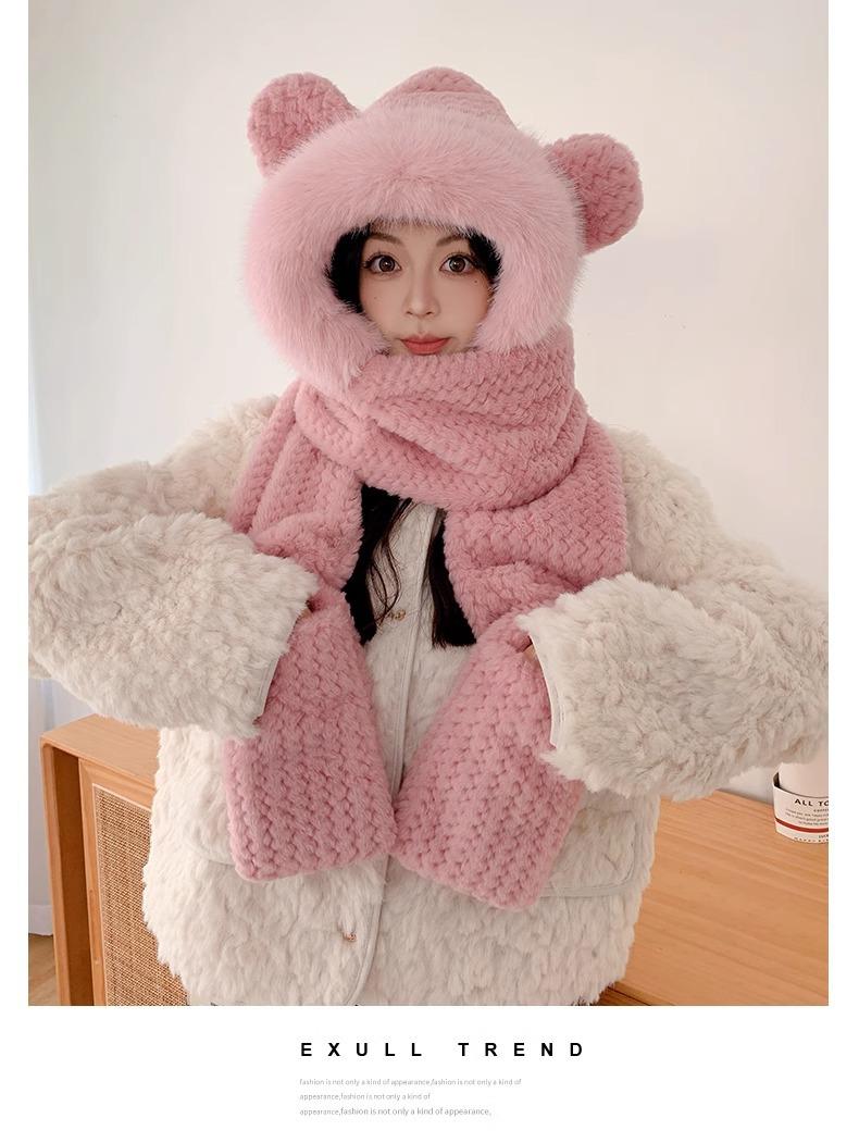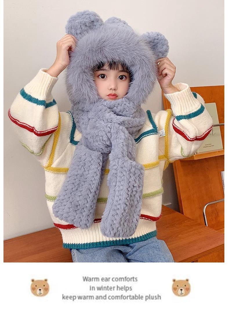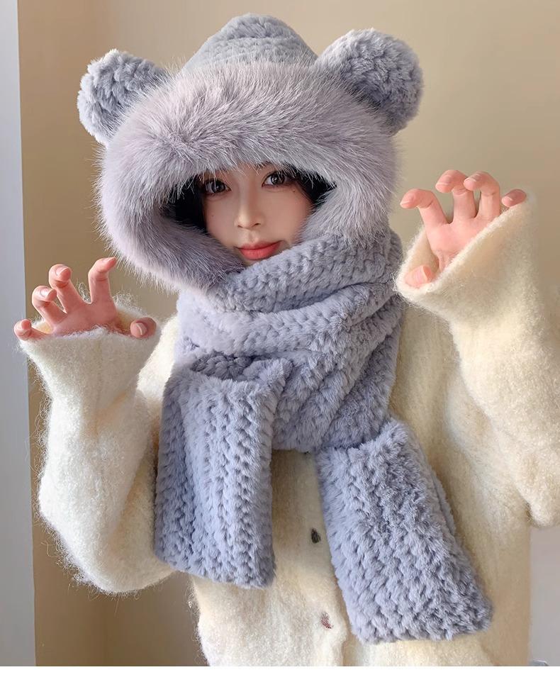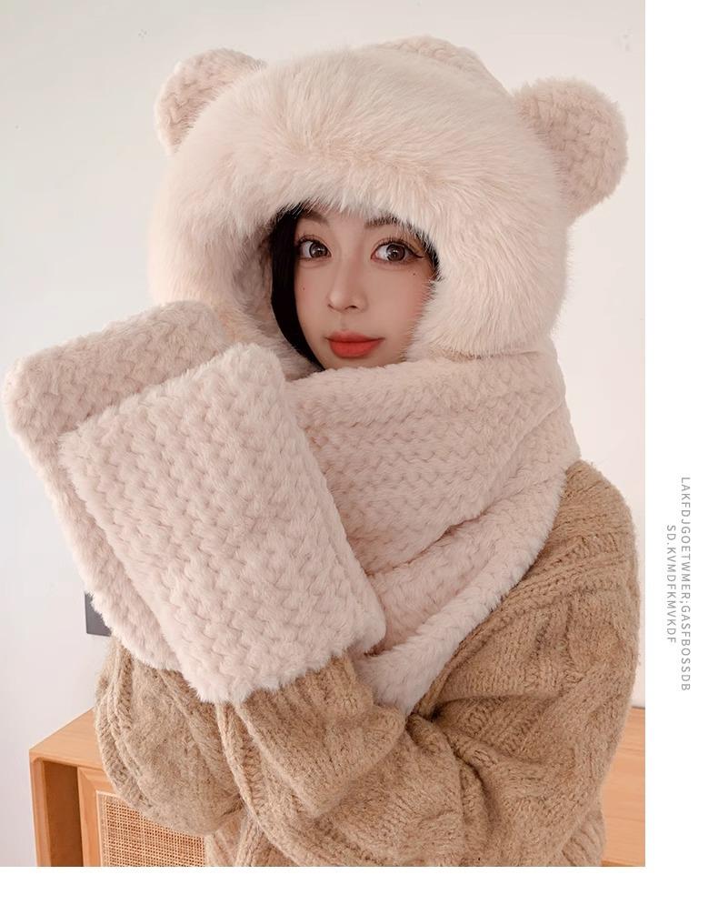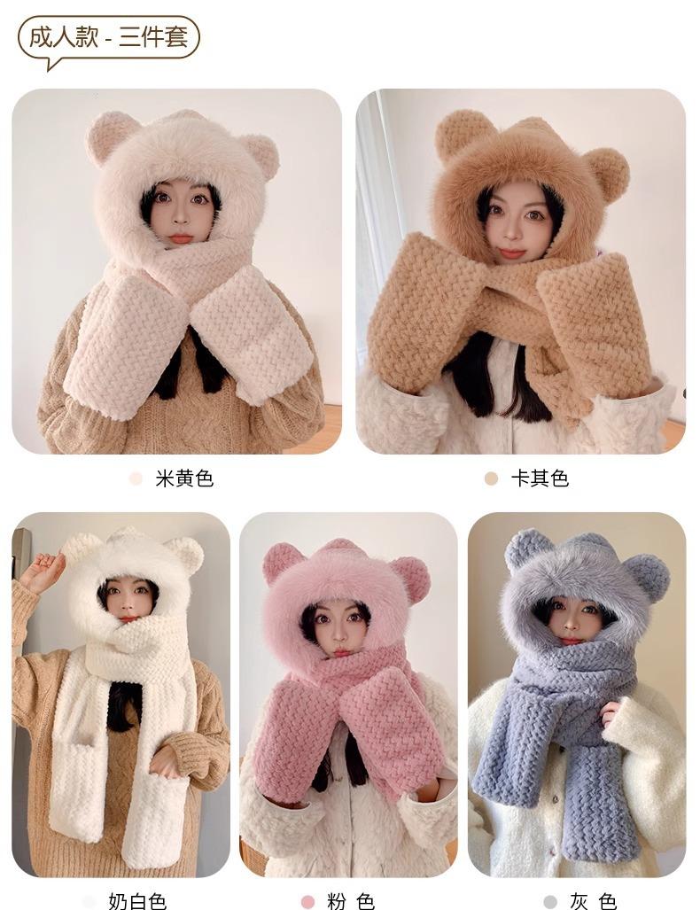 Sombrero de Felpa de Zorro Peludo Lindo para Niños Bufanda Guantes Un Conjunto de Tres Piezas para Invierno para Mujer Cálido