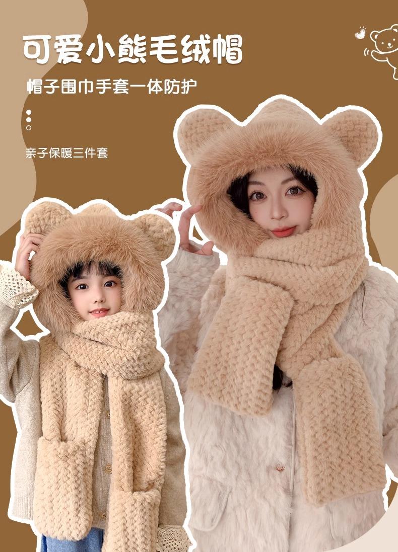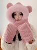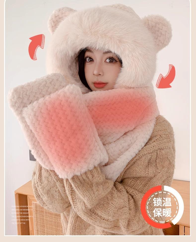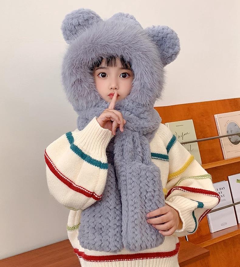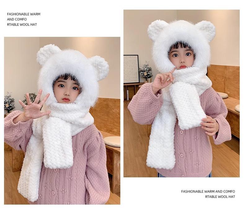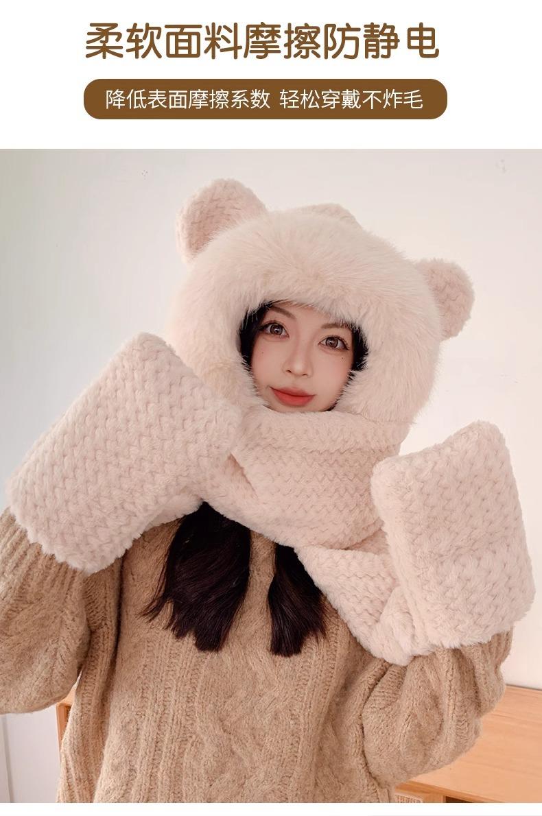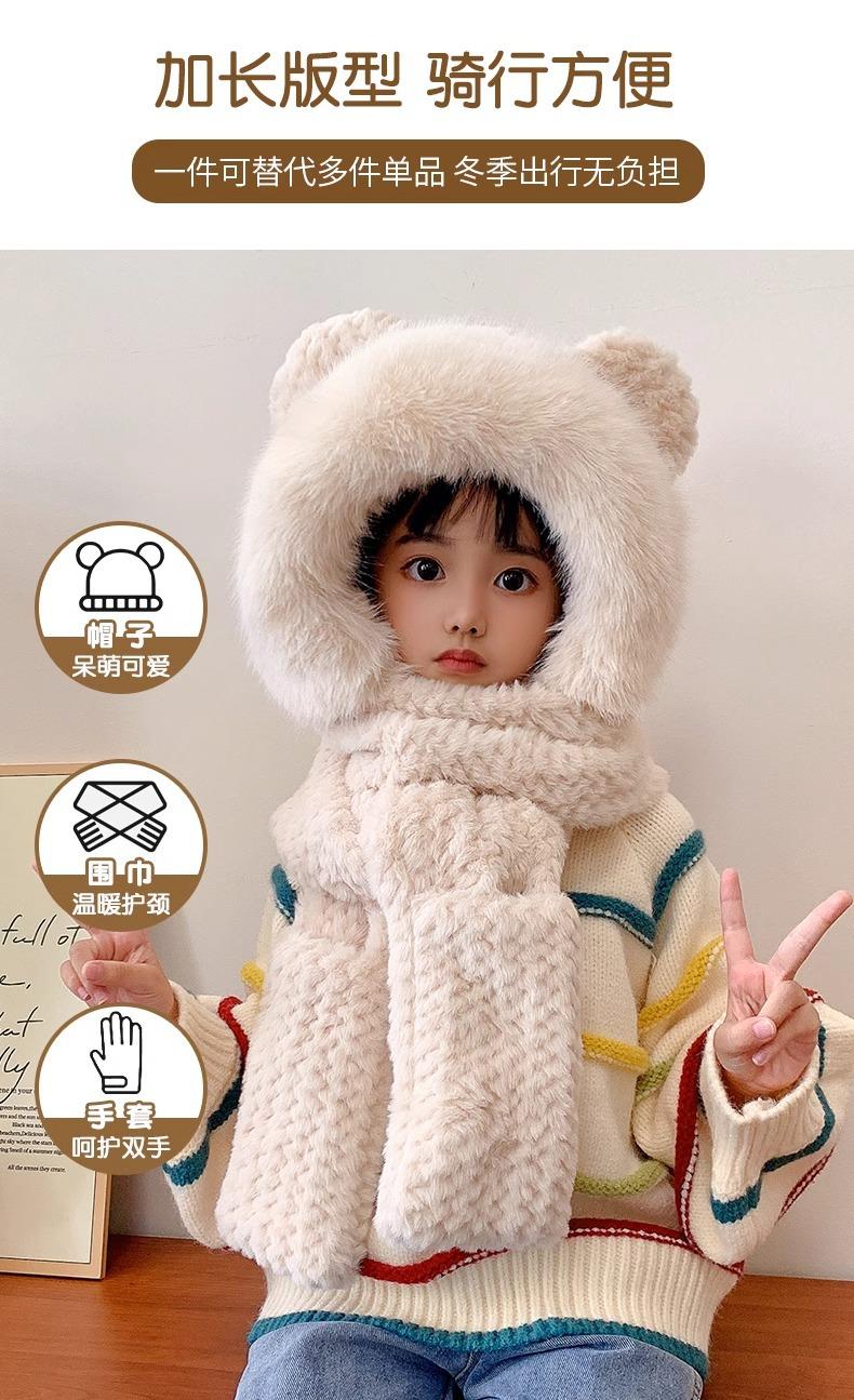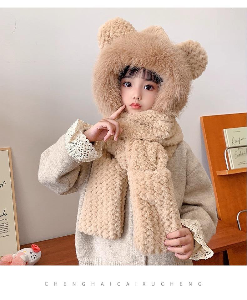 Sombrero de Felpa de Zorro Peludo Lindo para Niños Bufanda Guantes Un Conjunto de Tres Piezas para Invierno para Mujer Cálido