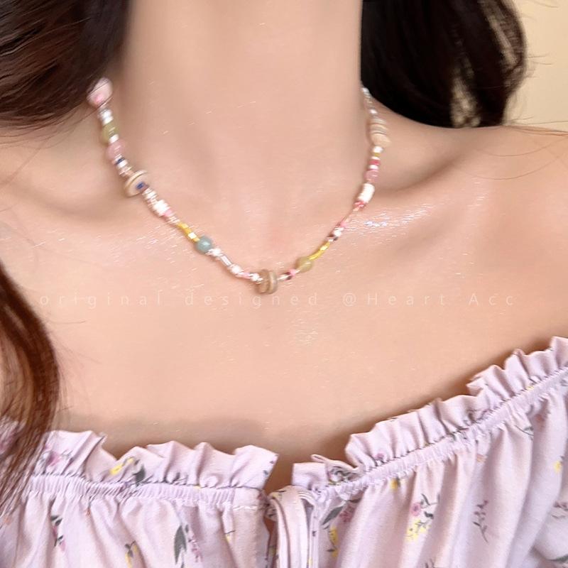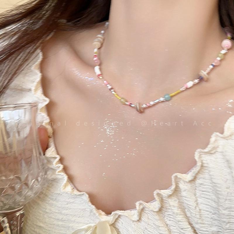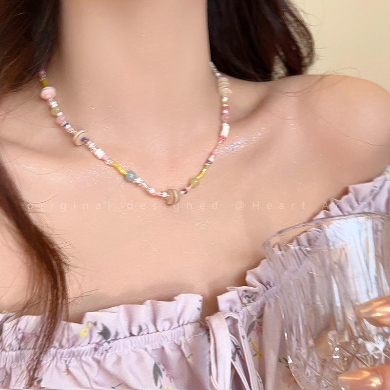 Collar de cuentas de piedra natural de colores hechos a mano para primavera, elegante y a la moda para mujer, con cadena de clavícula, accesorios que combinan con todo.