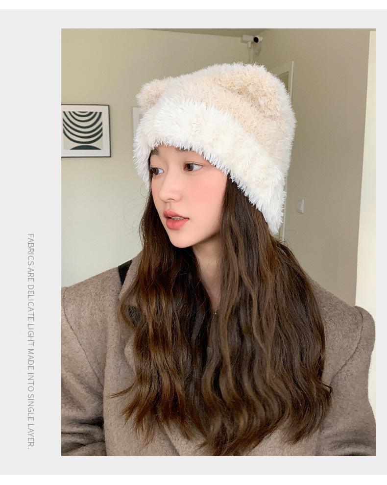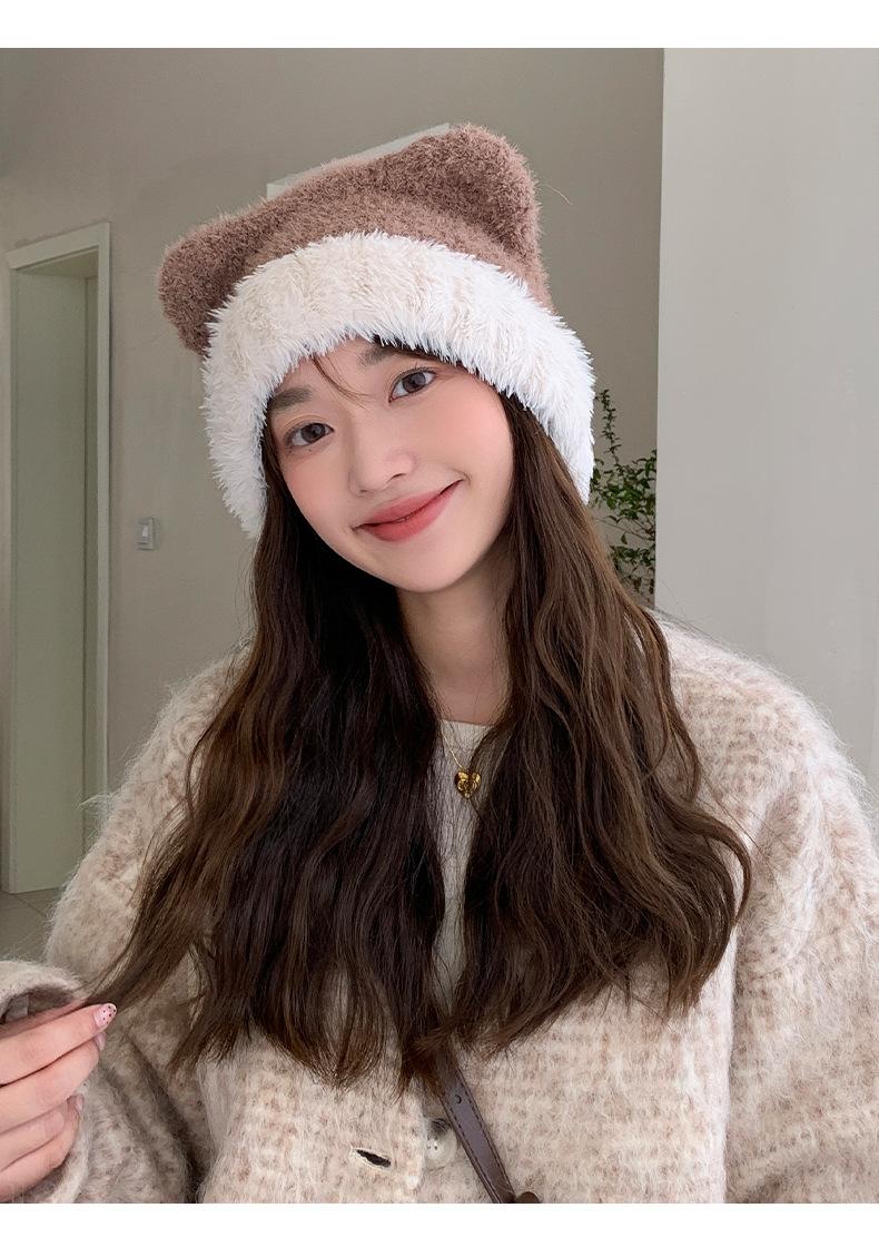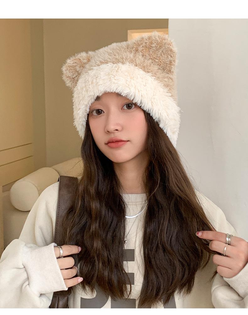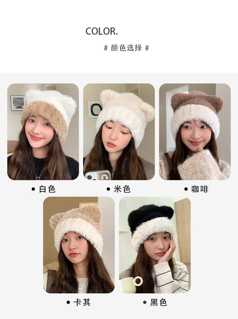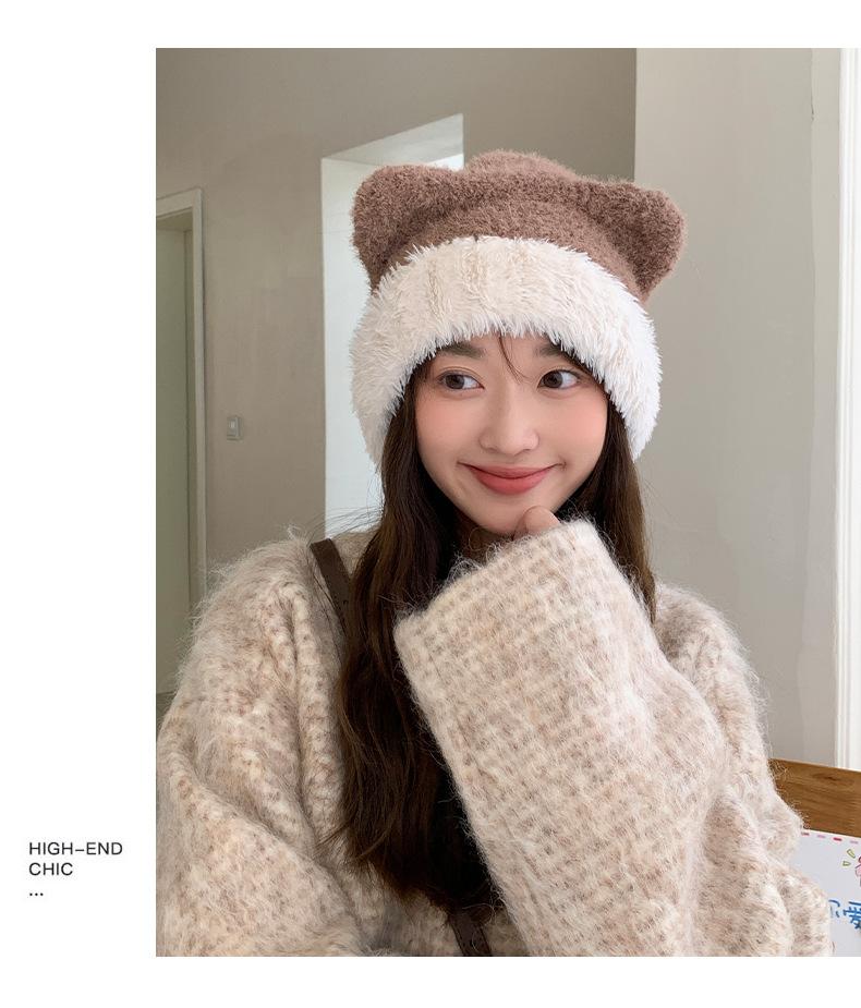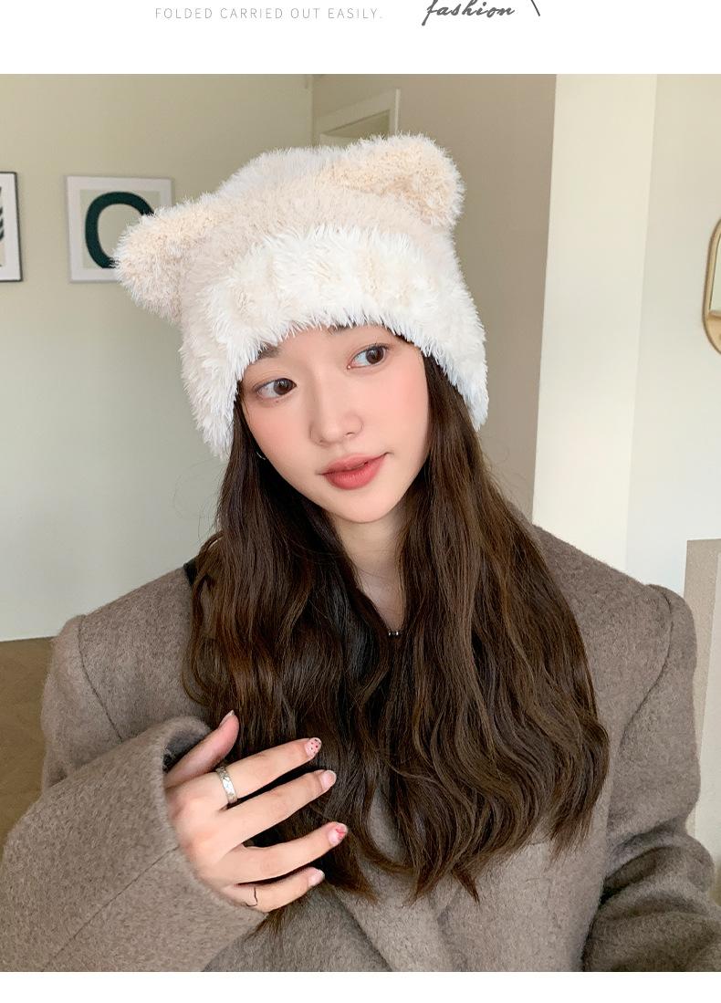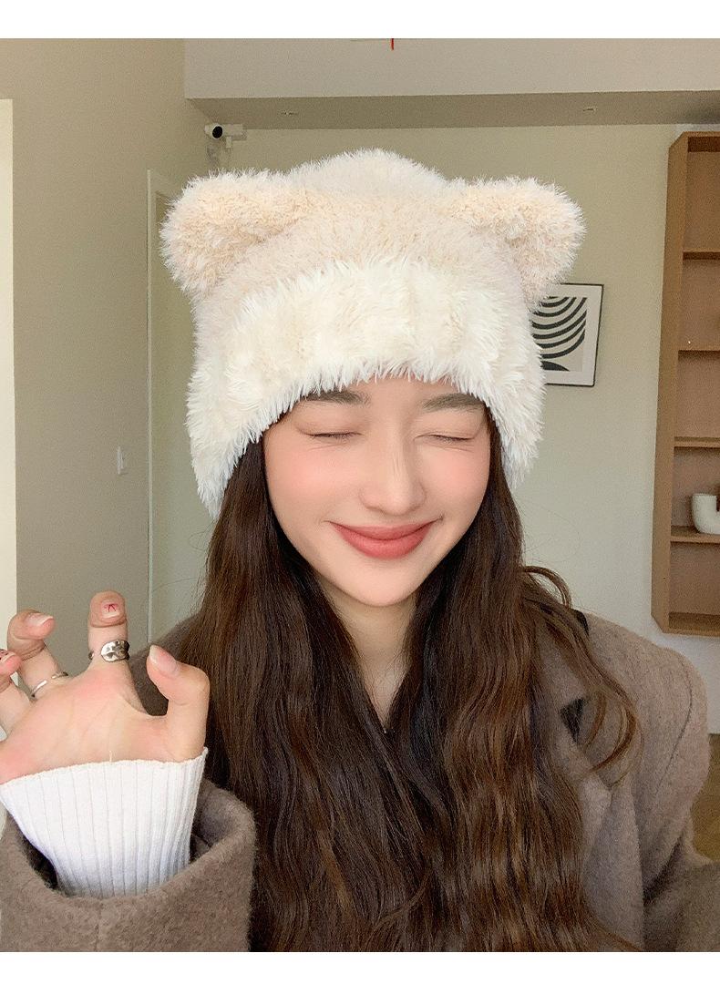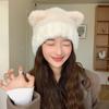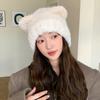 Gorro de otoño e invierno para mujer, de lana de punto, de color liso, combinable con todo, cálido y bonito, con orejas, para el frío, nuevo