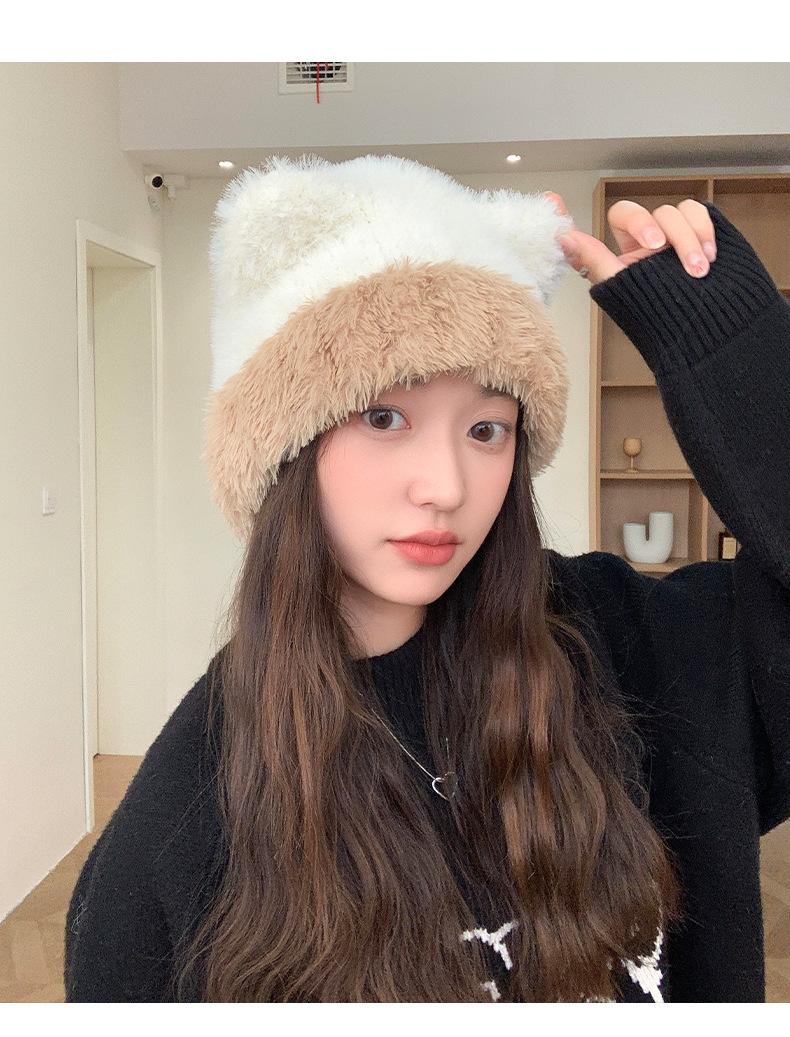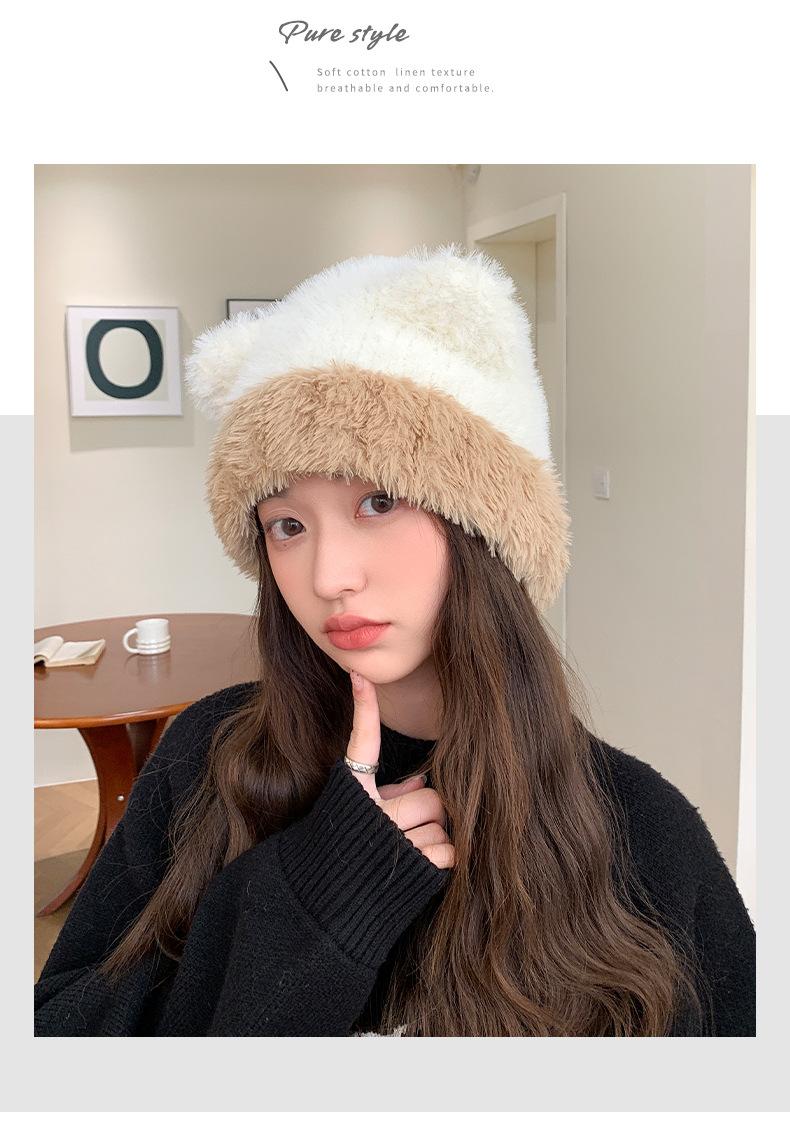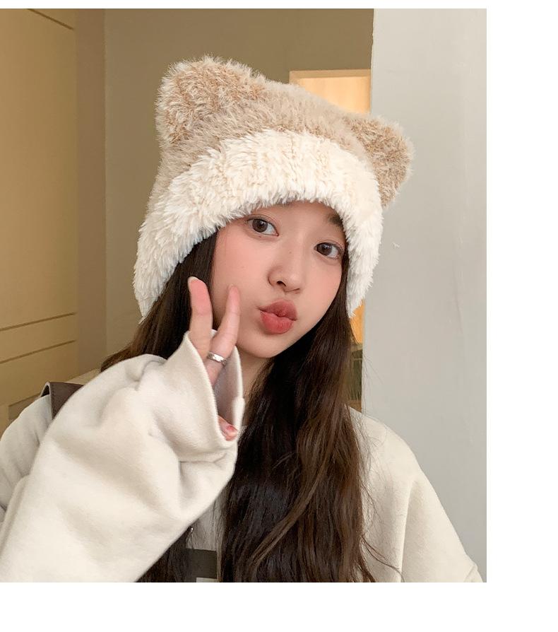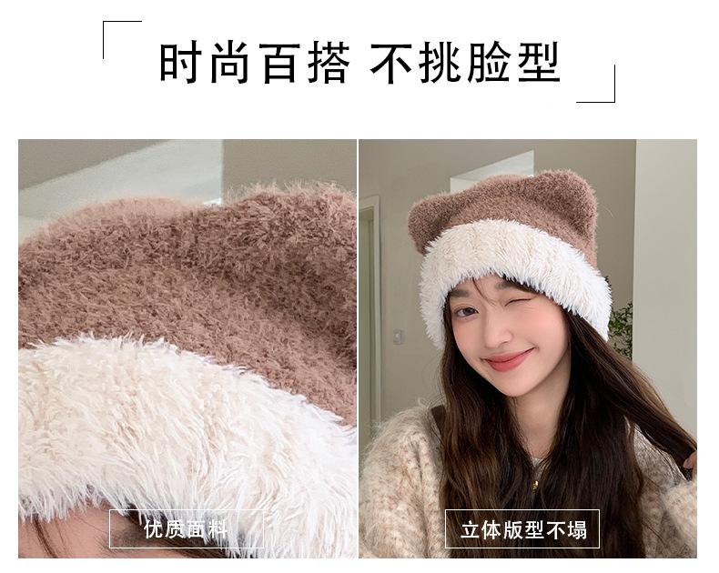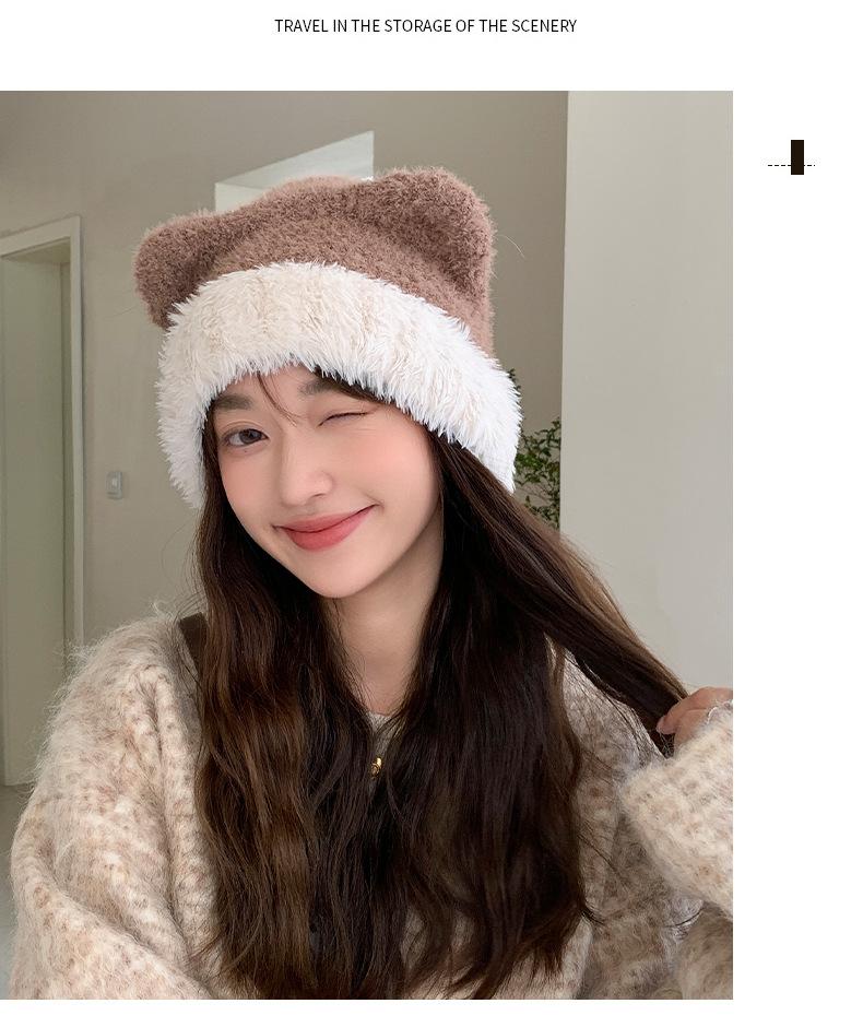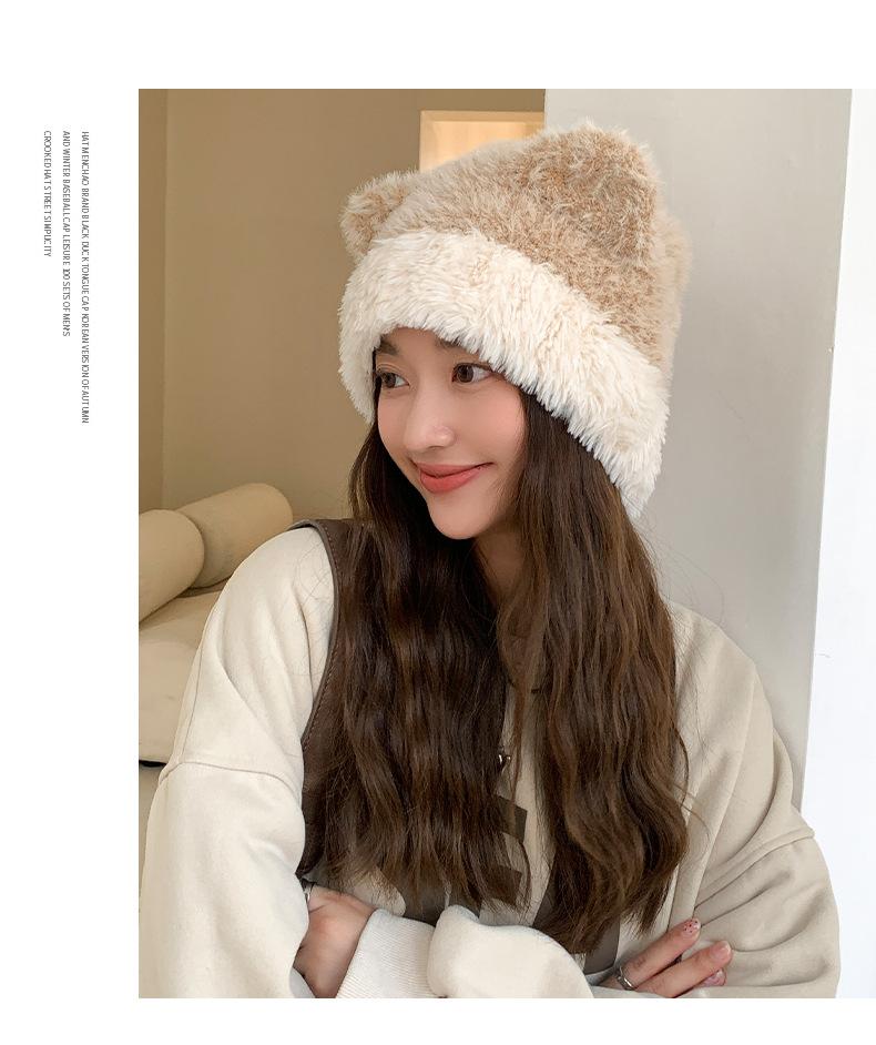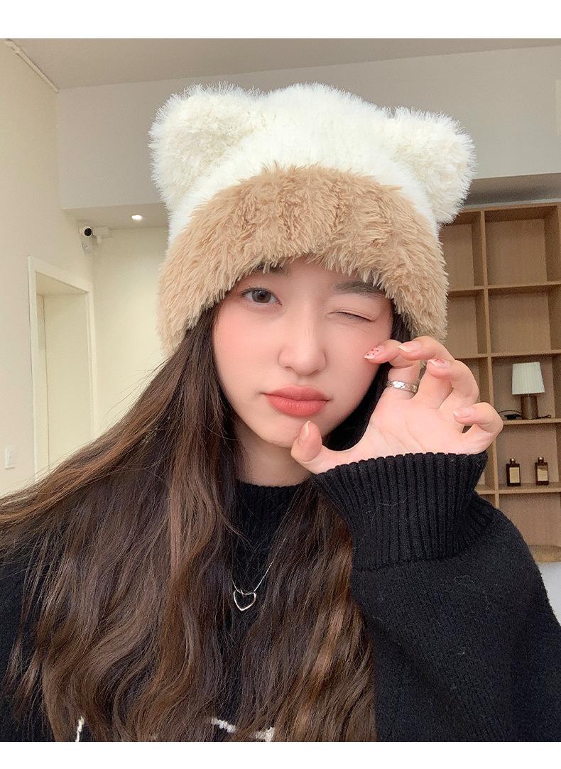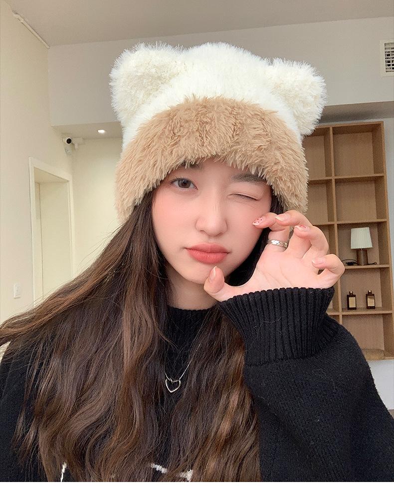 Gorro de otoño e invierno para mujer, de lana de punto, de color liso, combinable con todo, cálido y bonito, con orejas, para el frío, nuevo