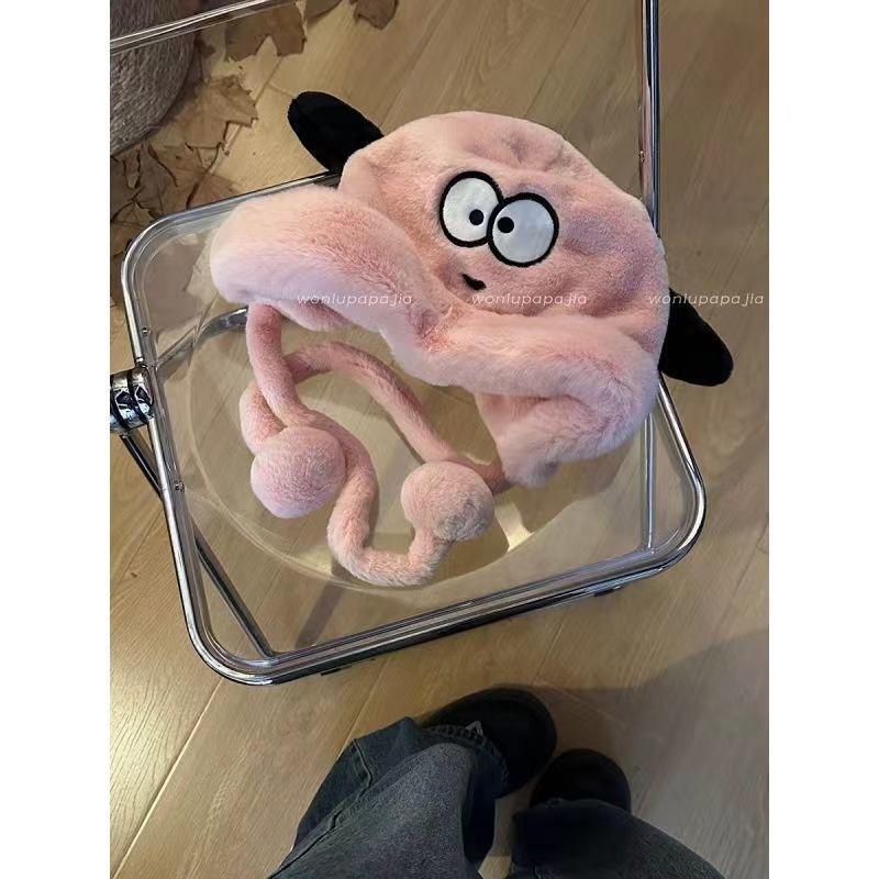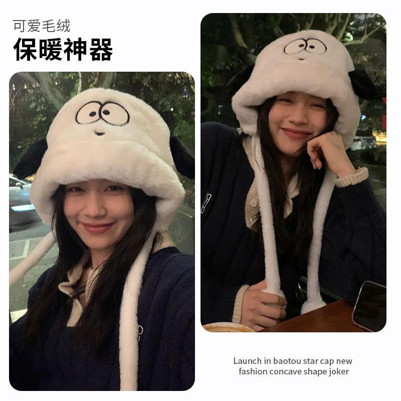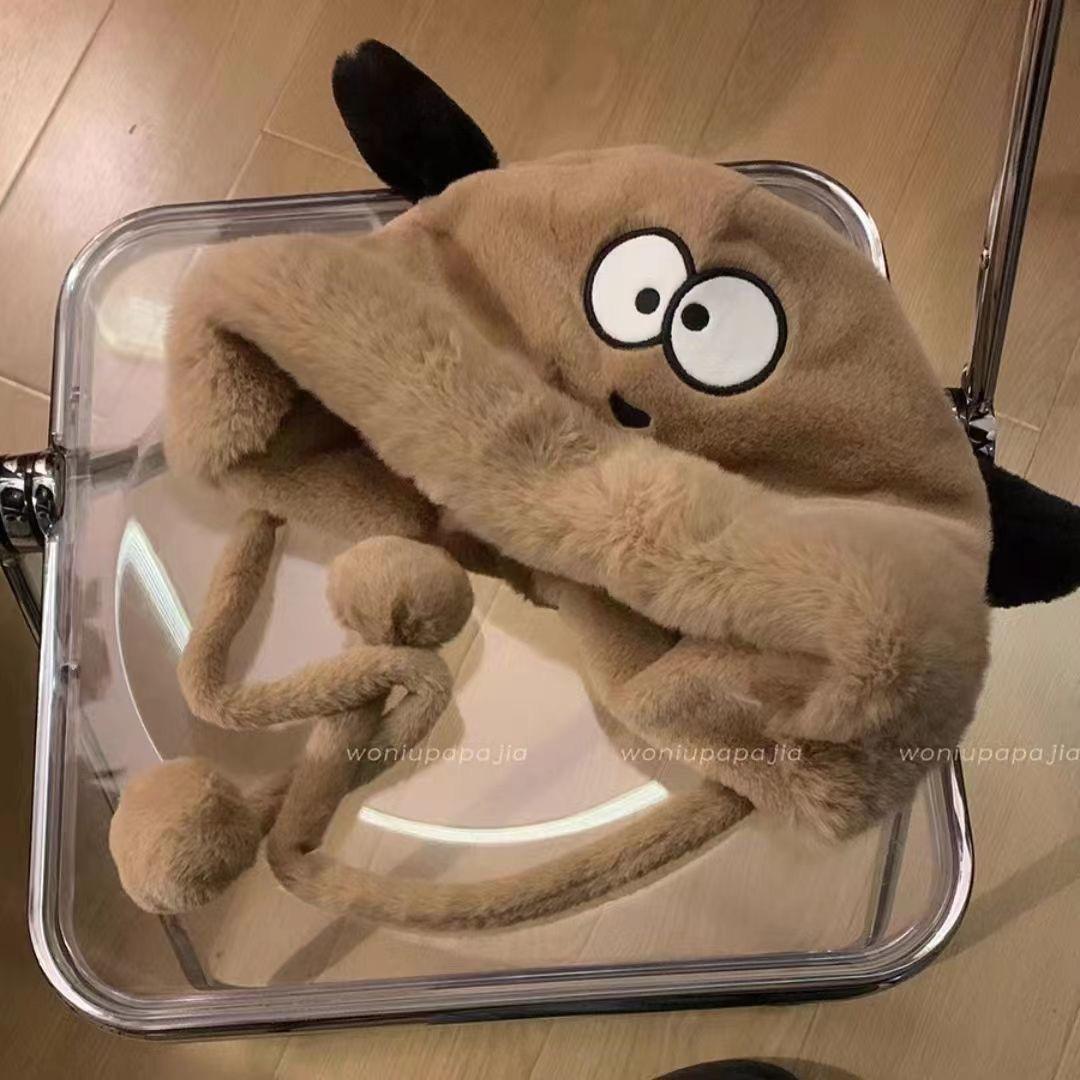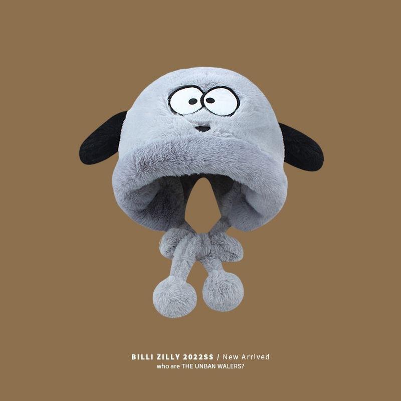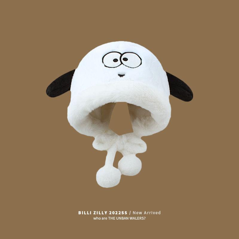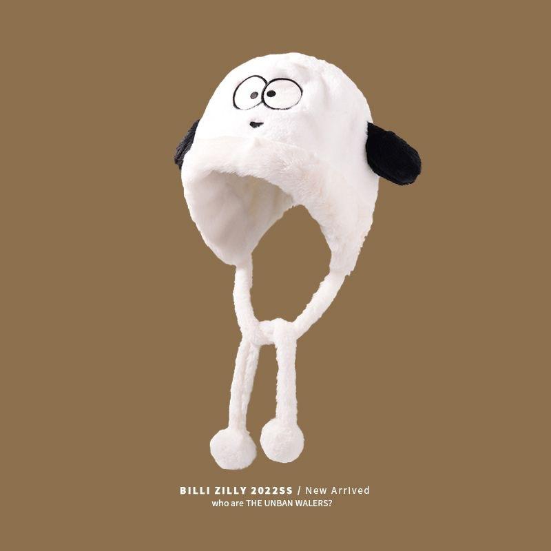 Sombrero de Peluche de Cachorro Lindo para Niñas Invierno Cálido Protección para las Orejas Peludo Combinable para Montar Forrado de vellón Engrosado Sombrero Lei Feng