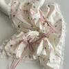 Anillo para el cabello con lazo floral rosa y encaje cuadrado para el intestino grueso, estilo coreano para mujer, accesorio para el cabello de alta gama con cuerda grande.