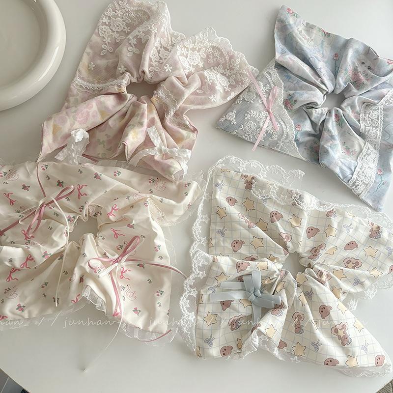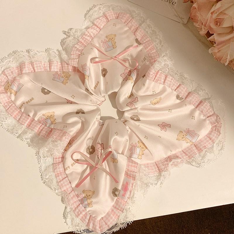 Pink kite flower lace, White hair tie kite double bow, Bear kite double bow, Blue kite pink flower lace hair tie