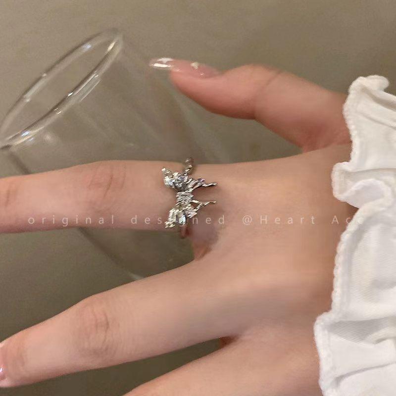 Anillo de Mariposa Tridimensional Irregular para Mujer Anillo de Zirconia Simple y Elegante Estilo Dulce y Cool Femenino Anillo Ajustable para Dieta para Mujer