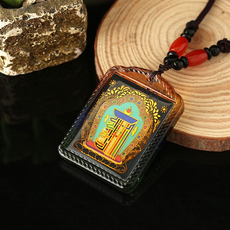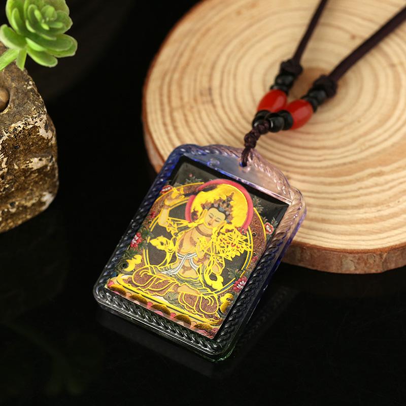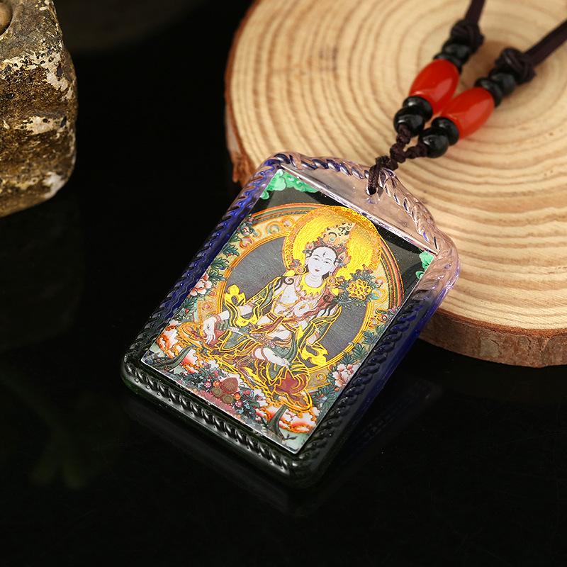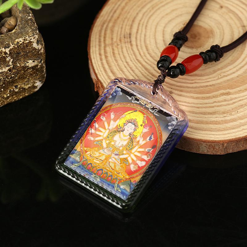 Thangka Caja Gawa Tíbet Vidrio Unilateral Cuadrado Thangka Pintado a Mano Guanyin de las Mil Manos Buda Amitabha Dios de la Riqueza Joyería