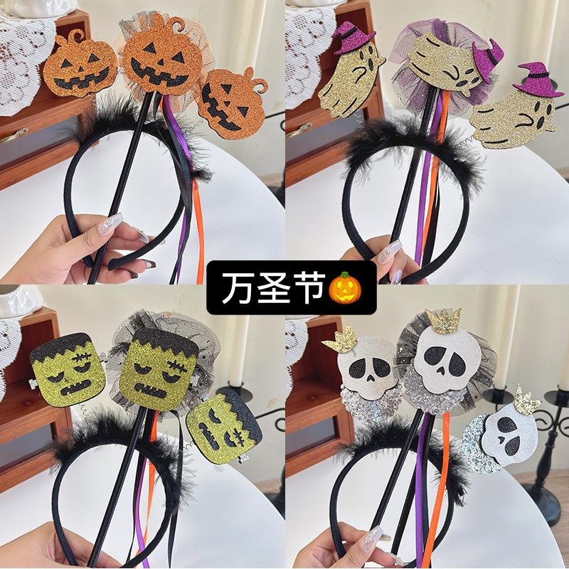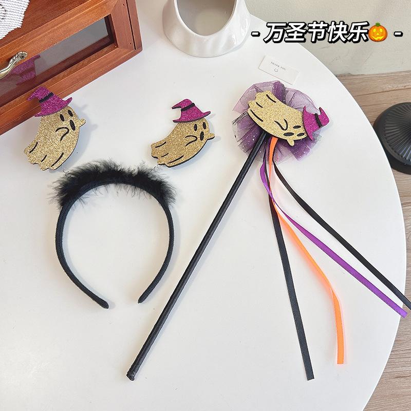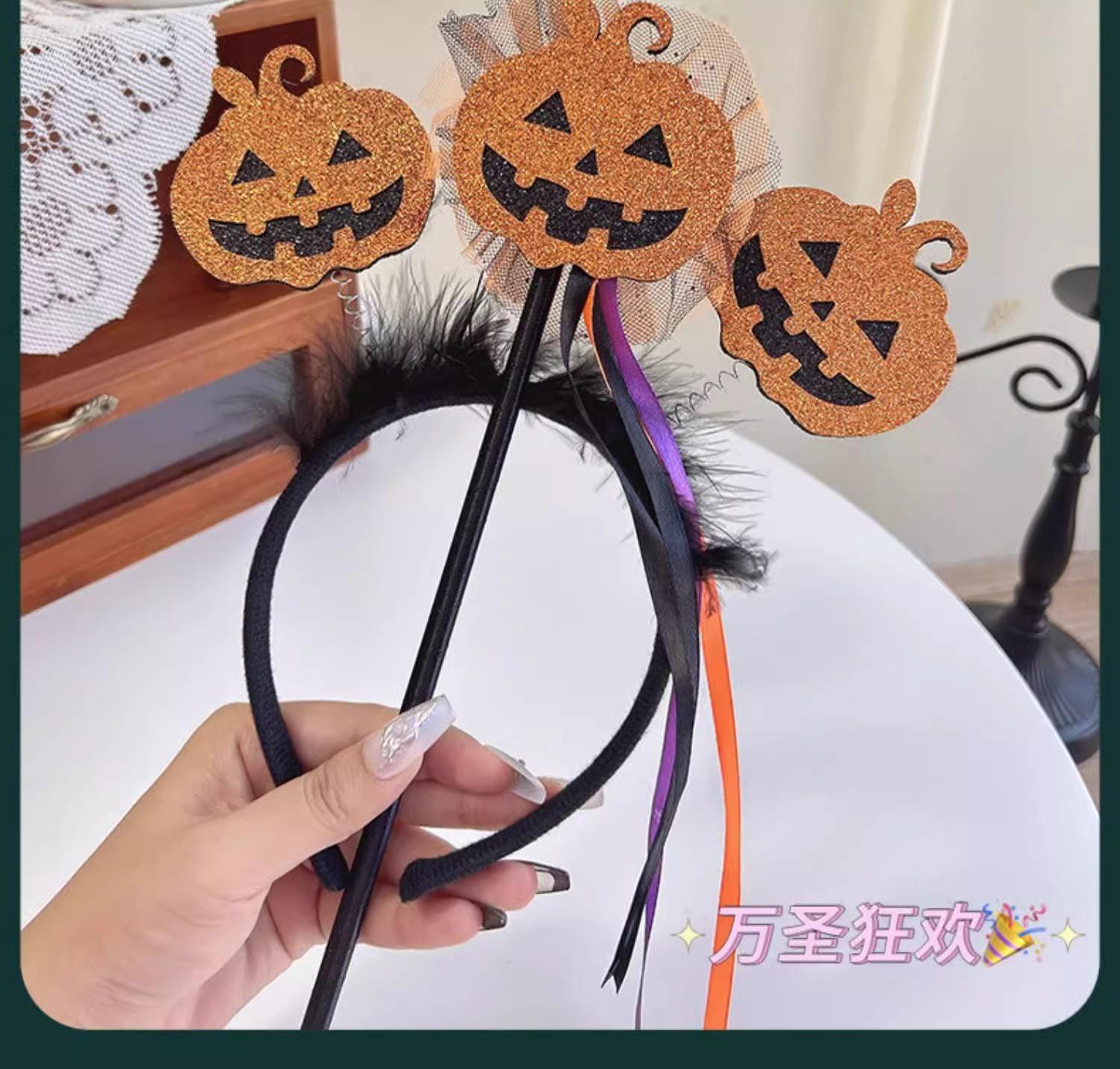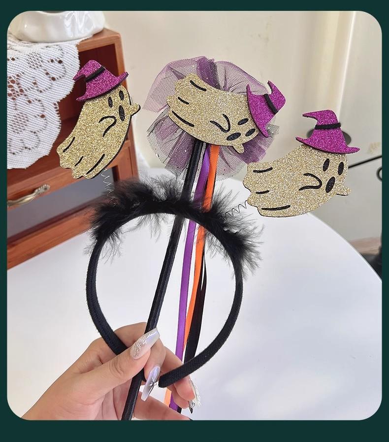 Hot stamping cloth double-ended pumpkin headband + stick, Hot stamping cloth double ghost headband + stick, Br...