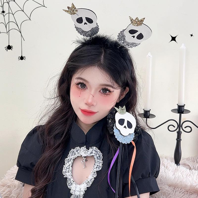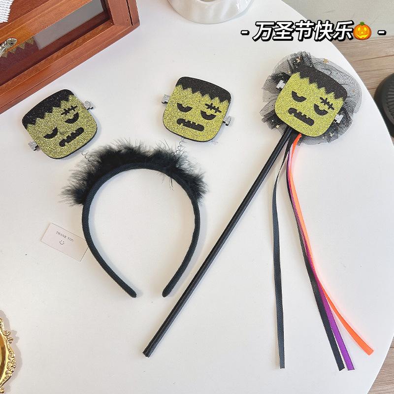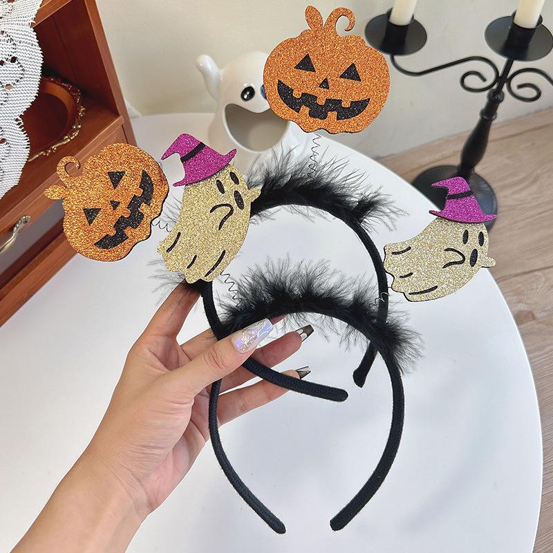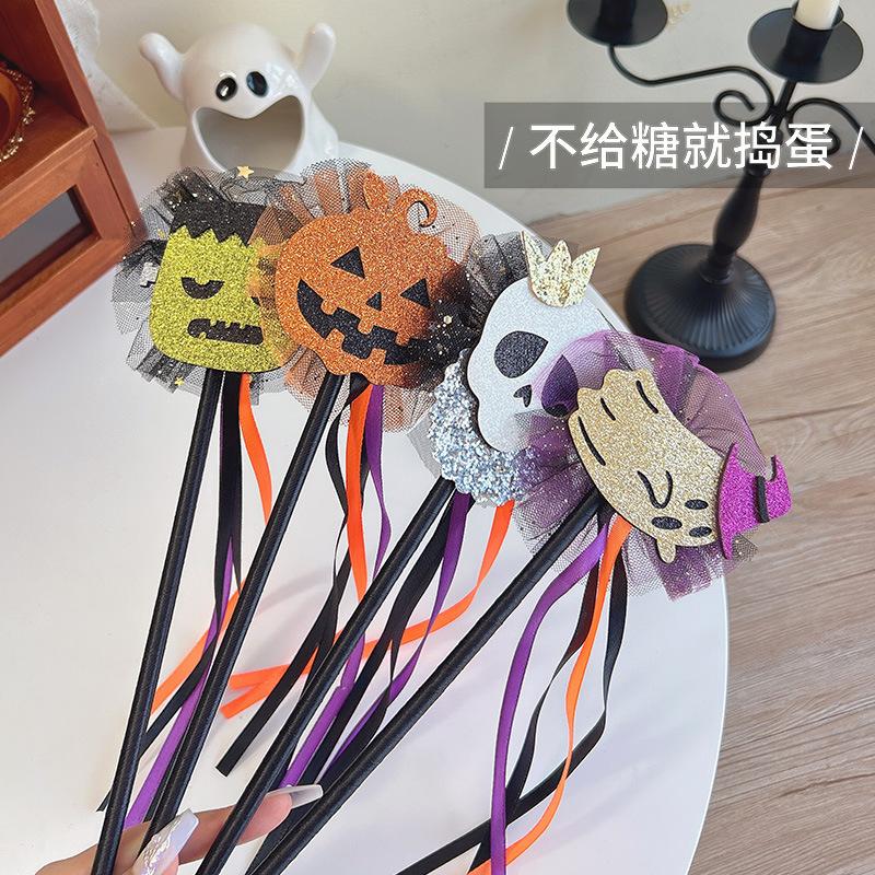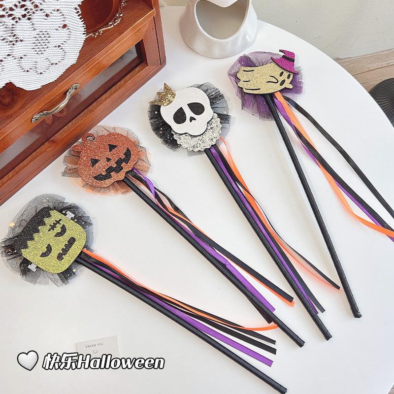 Hot stamping cloth double-ended pumpkin headband + stick, Hot stamping cloth double ghost headband + stick, Br...