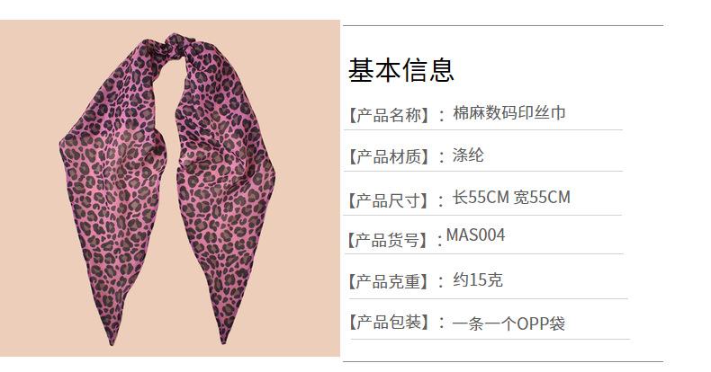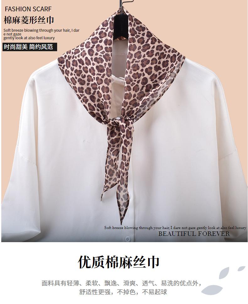 2024 Nueva Moda de Verano Bufanda de Seda con Estampado de Leopardo Versátil Algodón y Lino Rombo Bufanda Larga Diadema Bufanda Triangular Venta al por Mayor