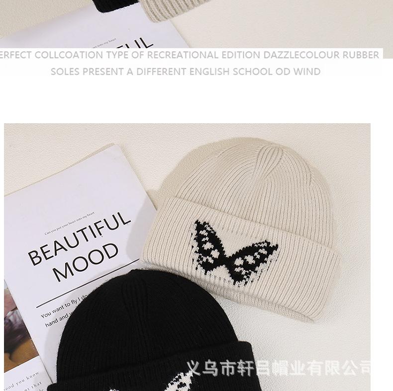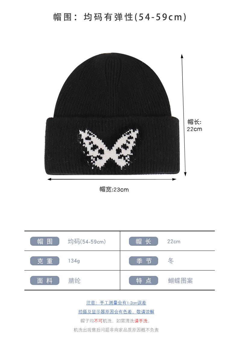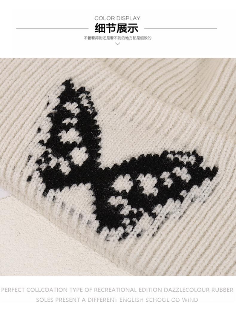 Gorro de punto con forma de mariposa y estrella para mujer, de lana nueva, cálido, resistente al viento, informal, de moda, para otoño e invierno.
