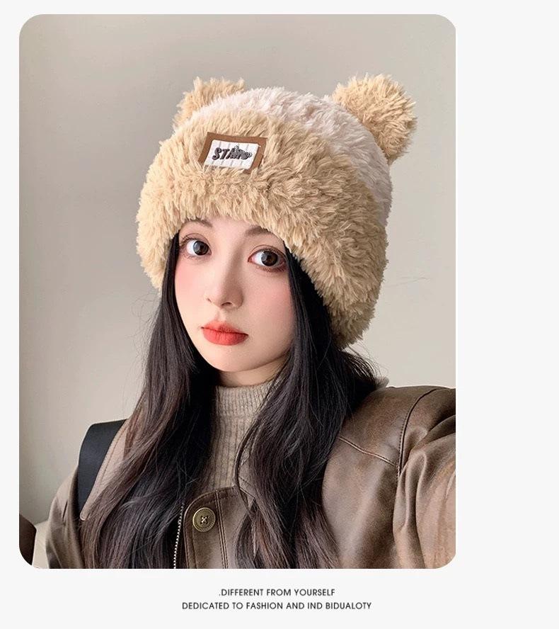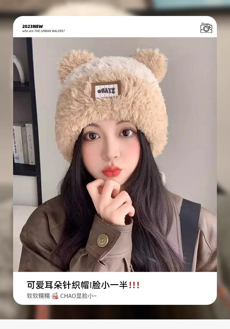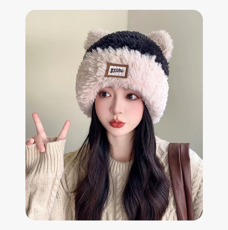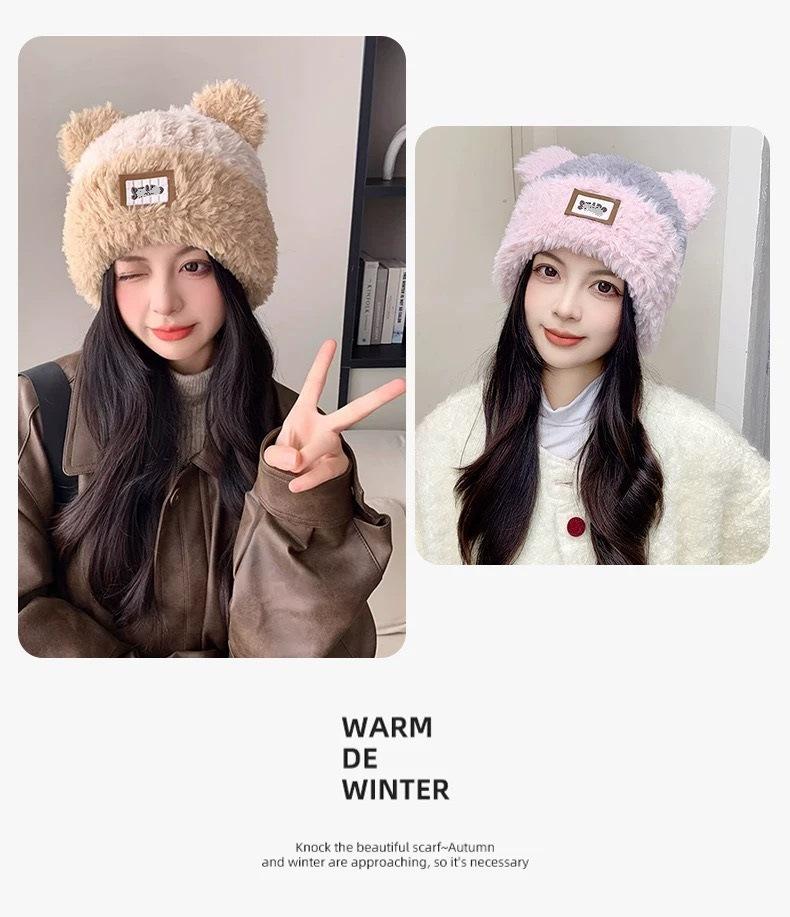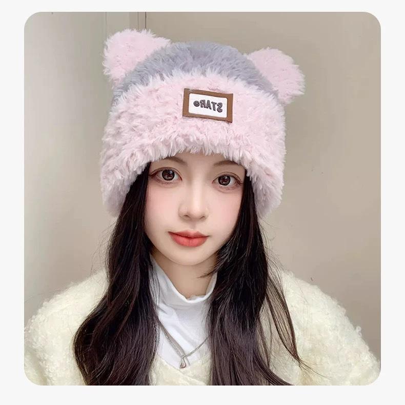 Gorro de Punto Holgado con Orejas de Gato Lindas para Mujer Invierno Cálido a Prueba de Frío Gorro de Felpa Invierno Forrado de Lana Protección para las Orejas Gorro de Lana