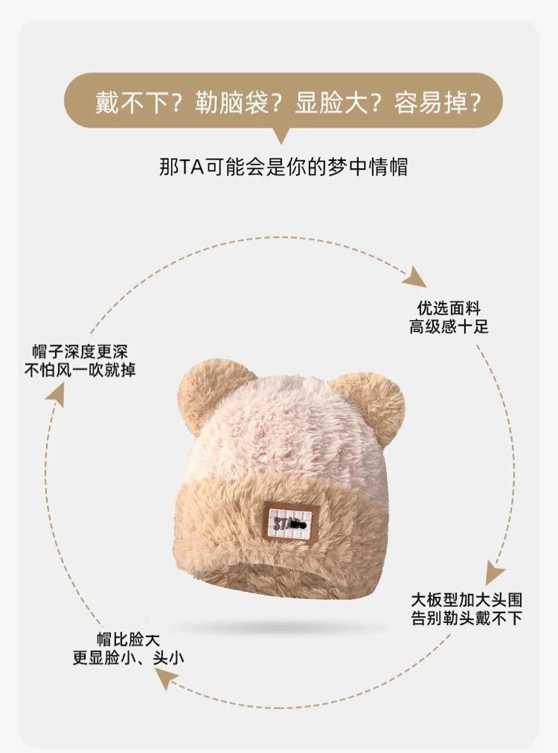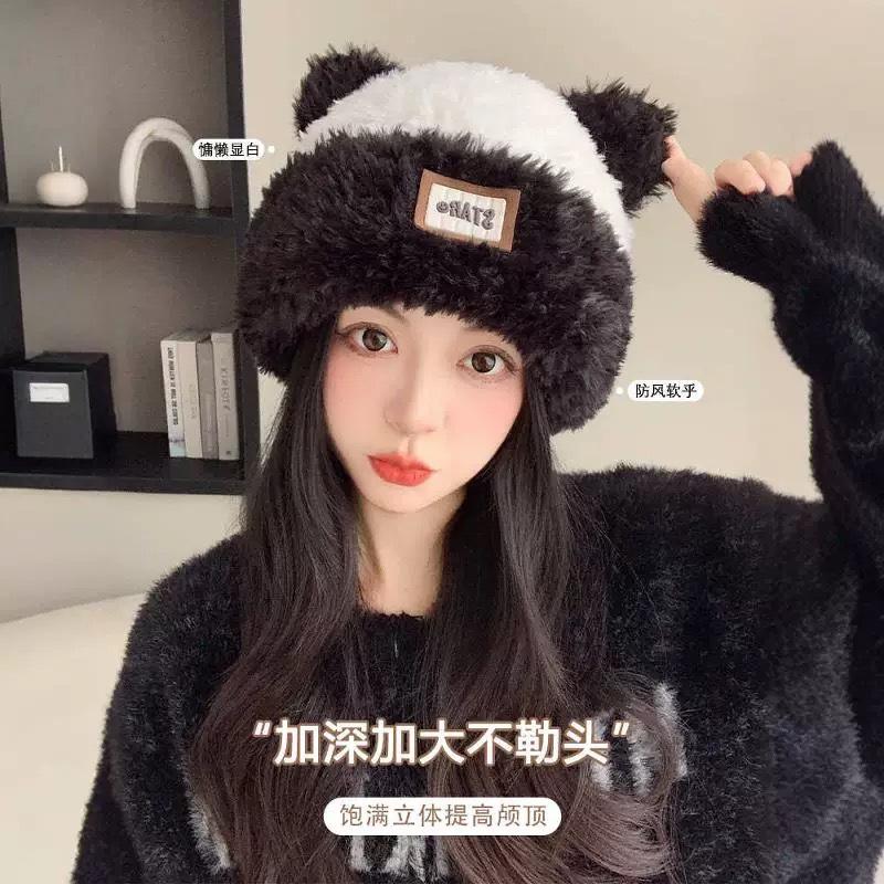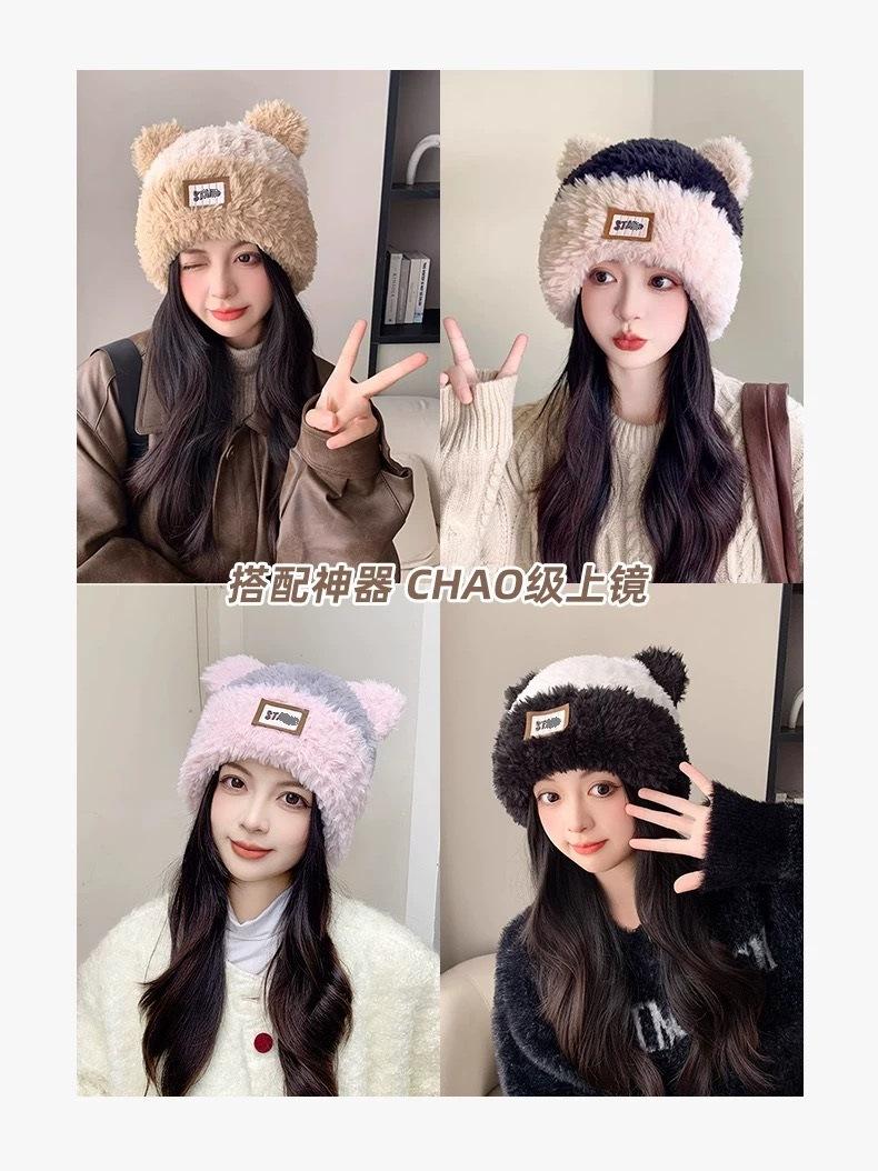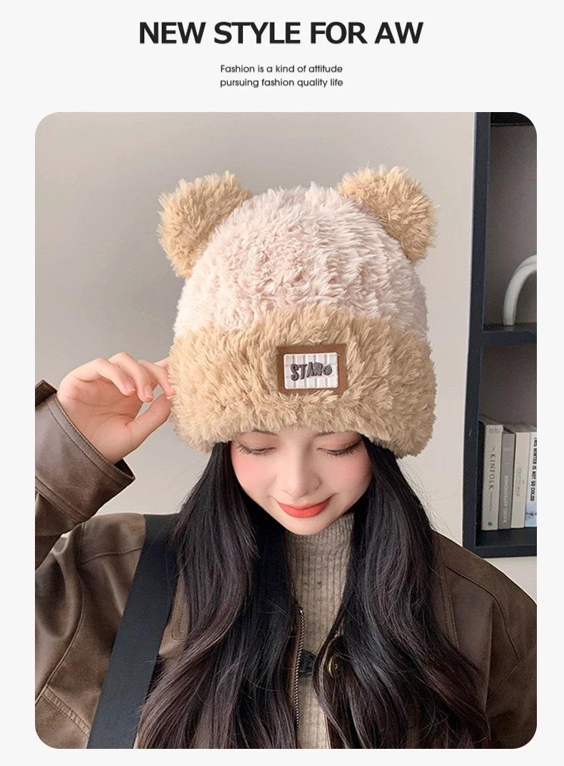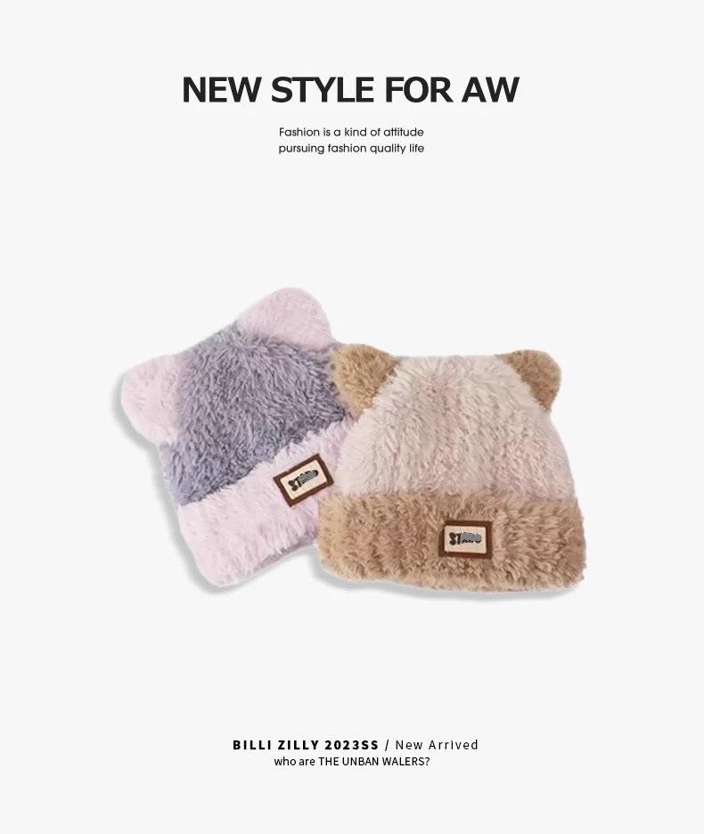 Gorro de Punto Holgado con Orejas de Gato Lindas para Mujer Invierno Cálido a Prueba de Frío Gorro de Felpa Invierno Forrado de Lana Protección para las Orejas Gorro de Lana