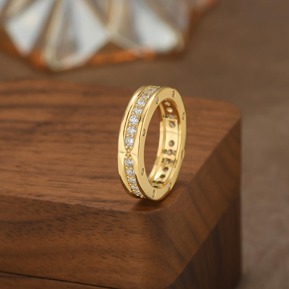 Anillo de Personalidad de Circonio Microincrustado Electrochapado en Oro Real para Mujer, Anillo Cerrado de Diamante Completo de Alta Gama, Exquisito Anillo de Dedo de Comida al por Mayor