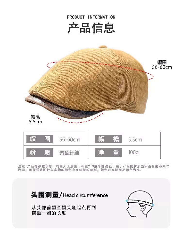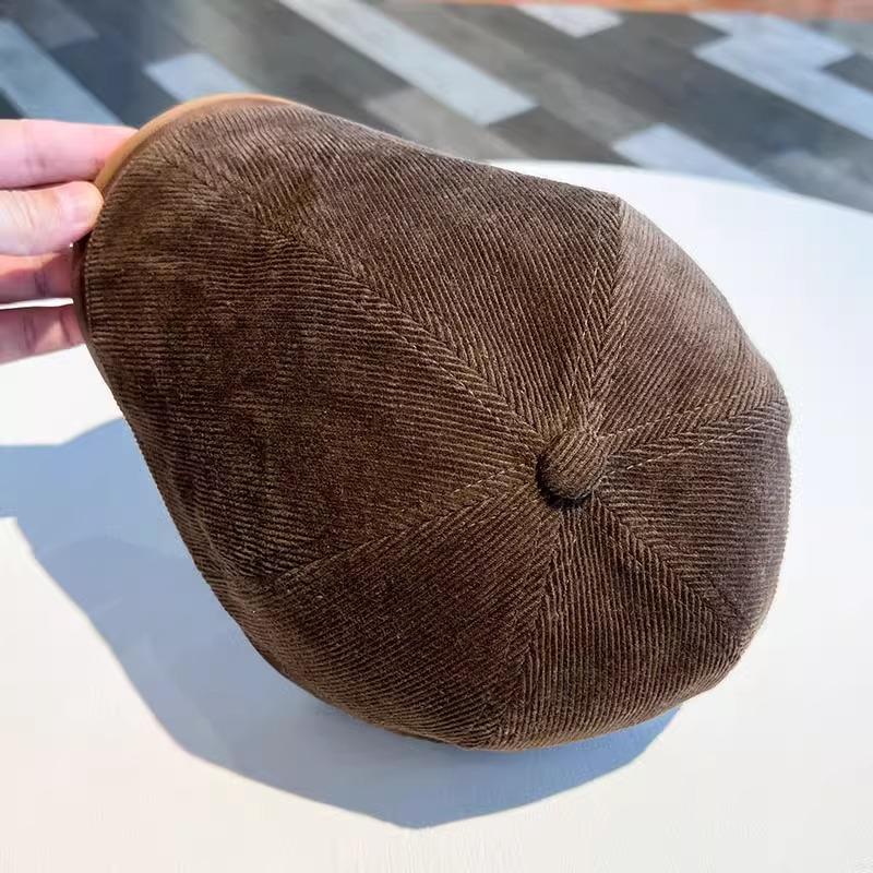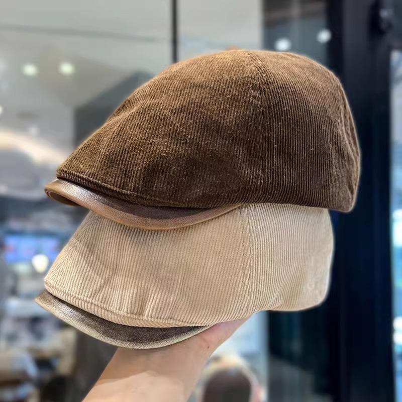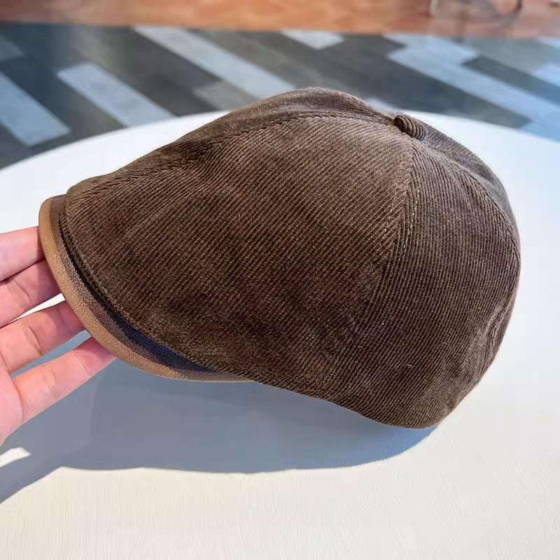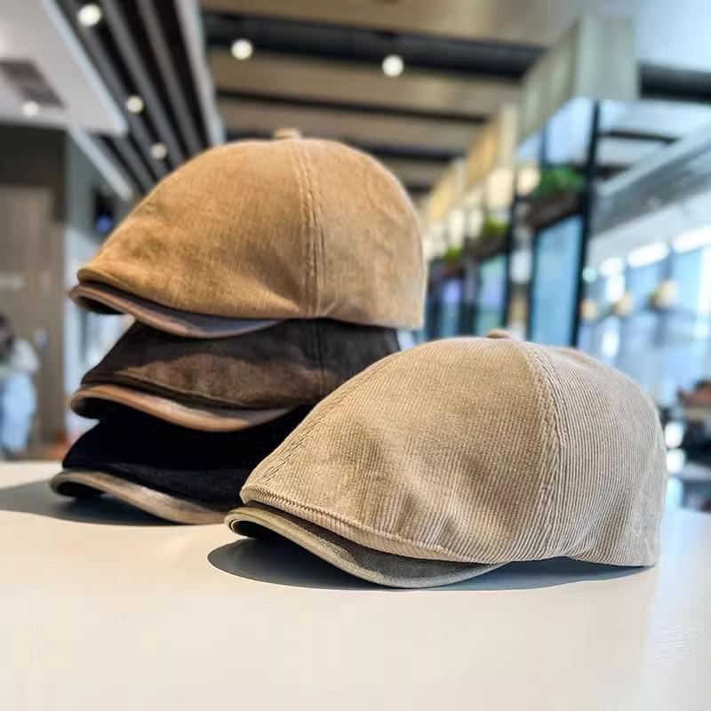 Sombrero de otoño estilo británico desgastado para mujer color puro uso inverso boina de moda retro americana para hombre casual y versátil