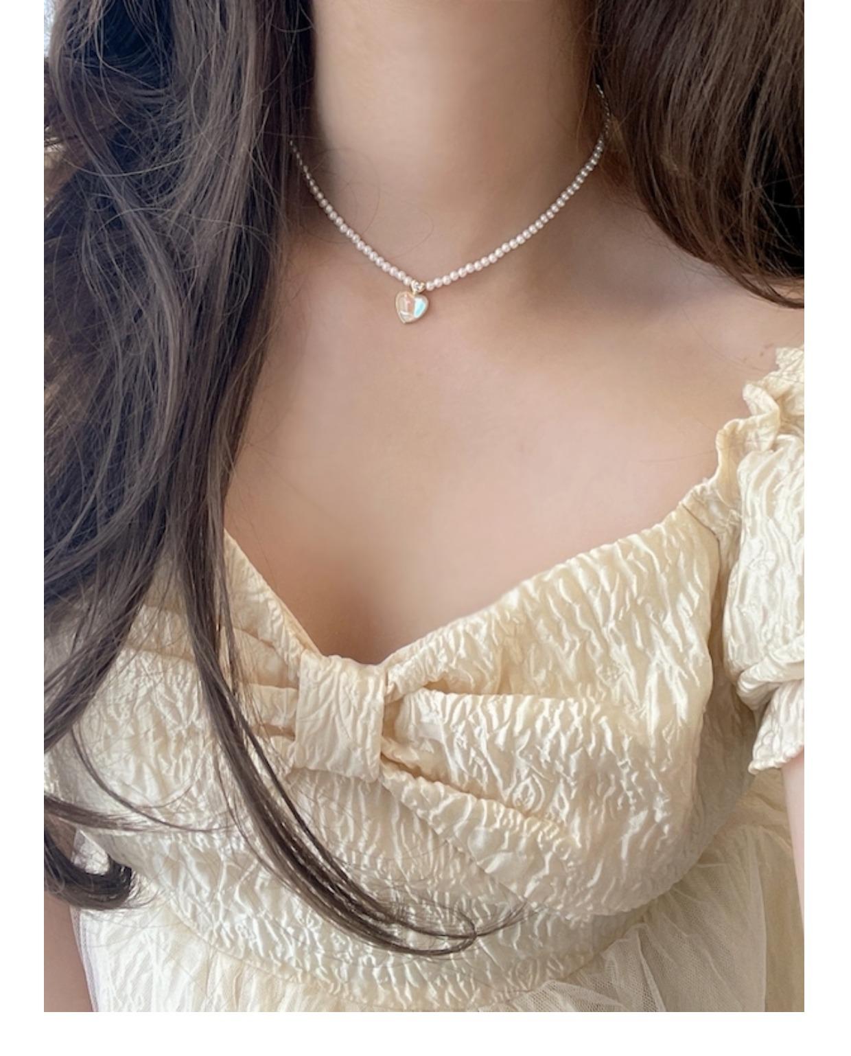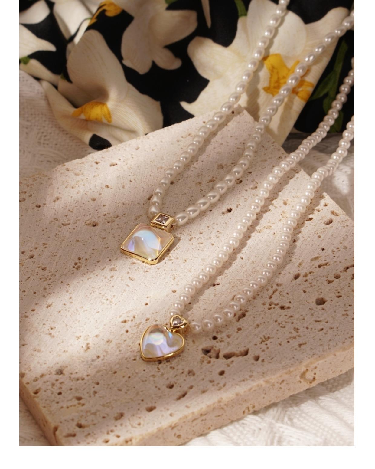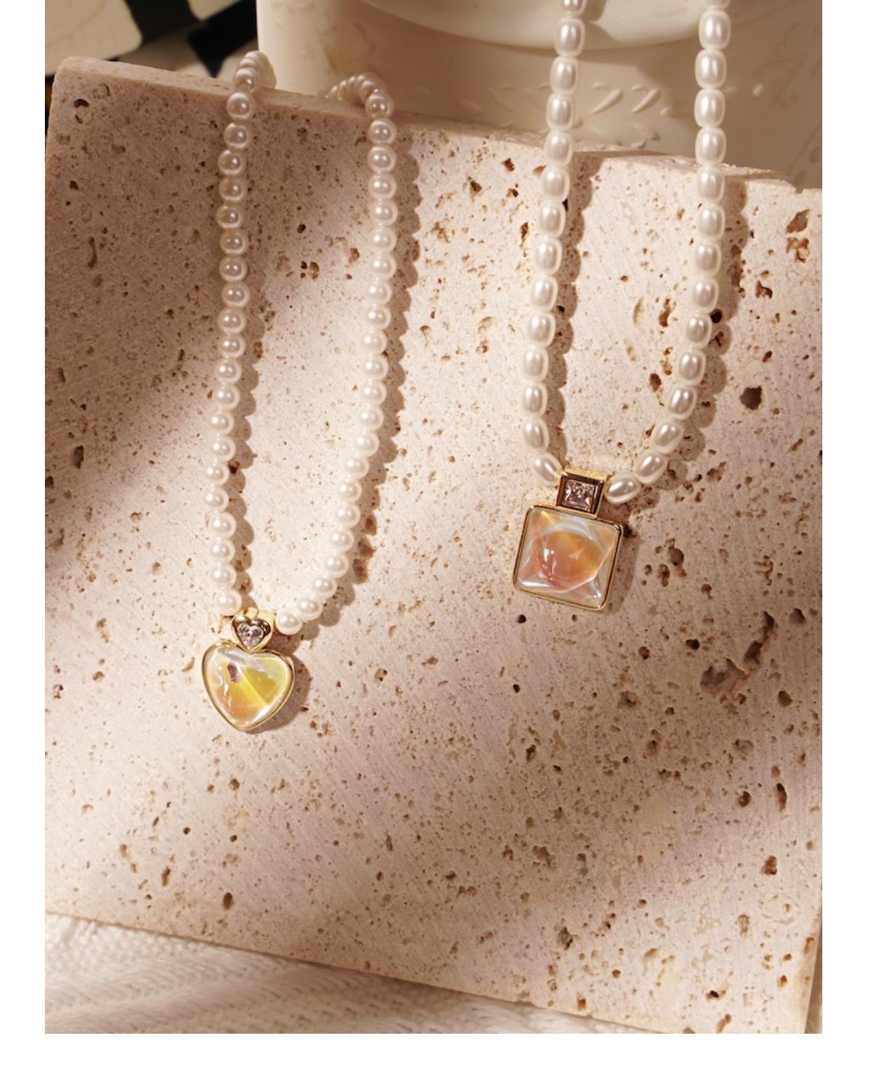 Collar con colgante de perlas de cristal con diseño de nicho francés de sirena para mujer