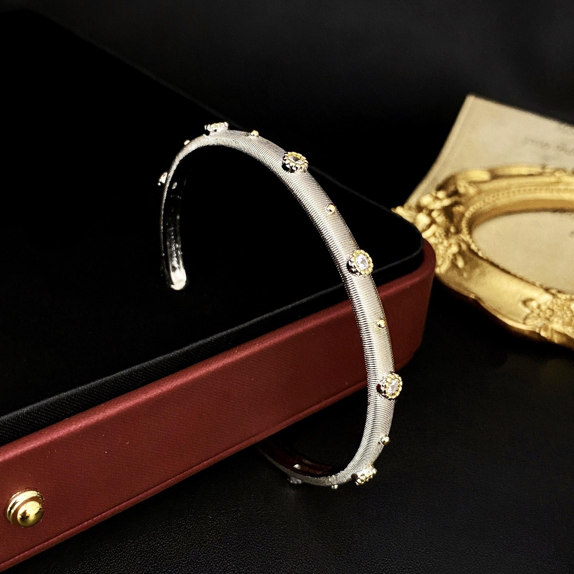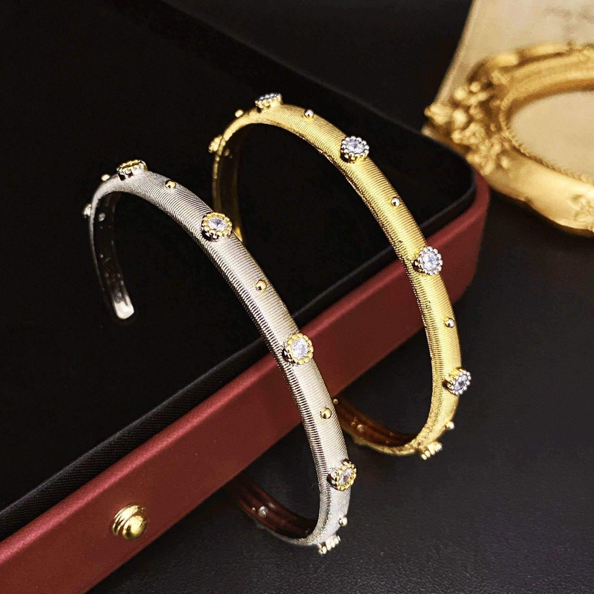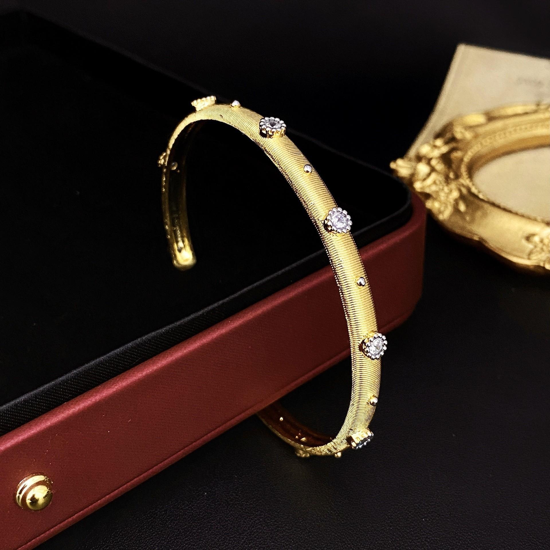 Pulsera Abierta de Lujo Ligero de Alta Gama con Artesanía de Dibujo de Alambre Retro con Circonita Micro-incrustada Transfronteriza de Nueva Entrada Pulsera Elegante de Moda