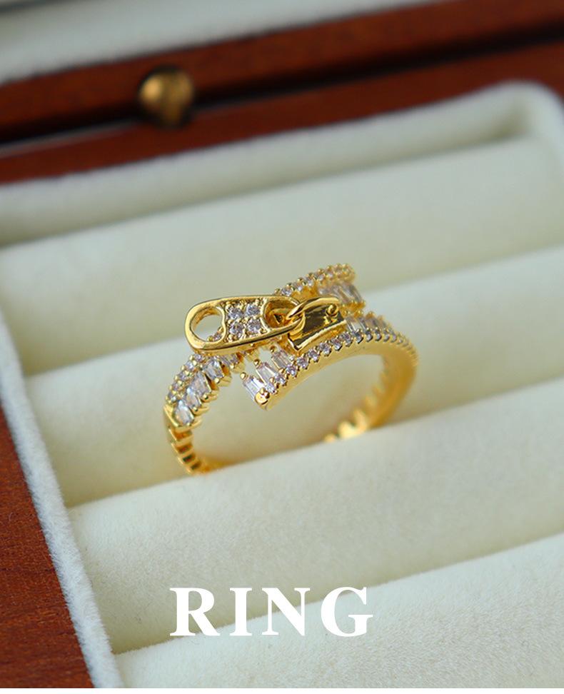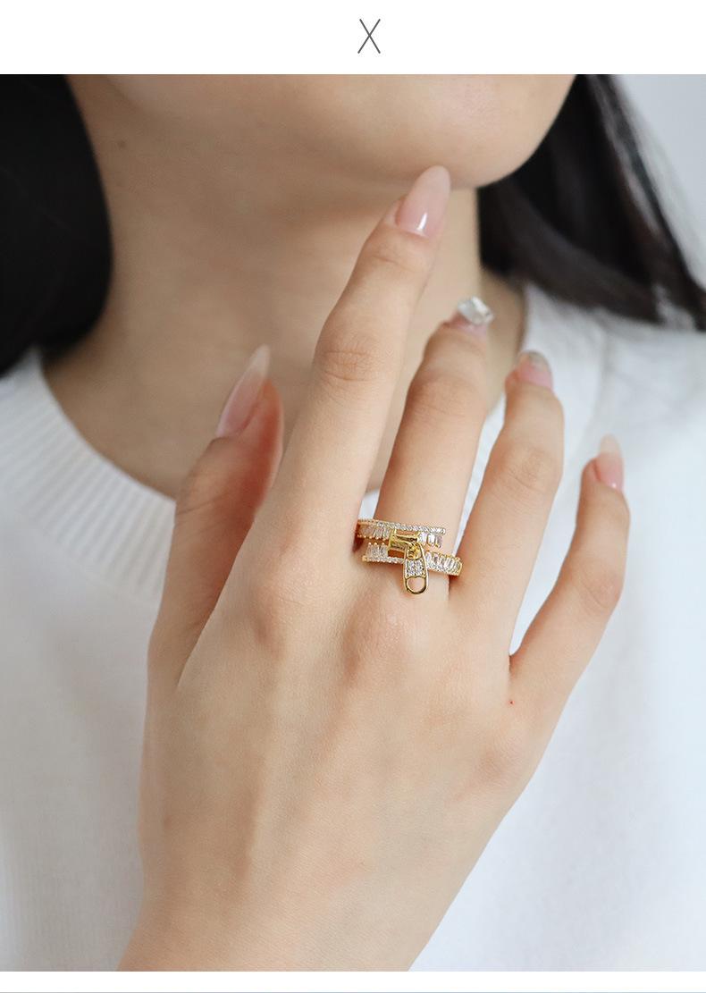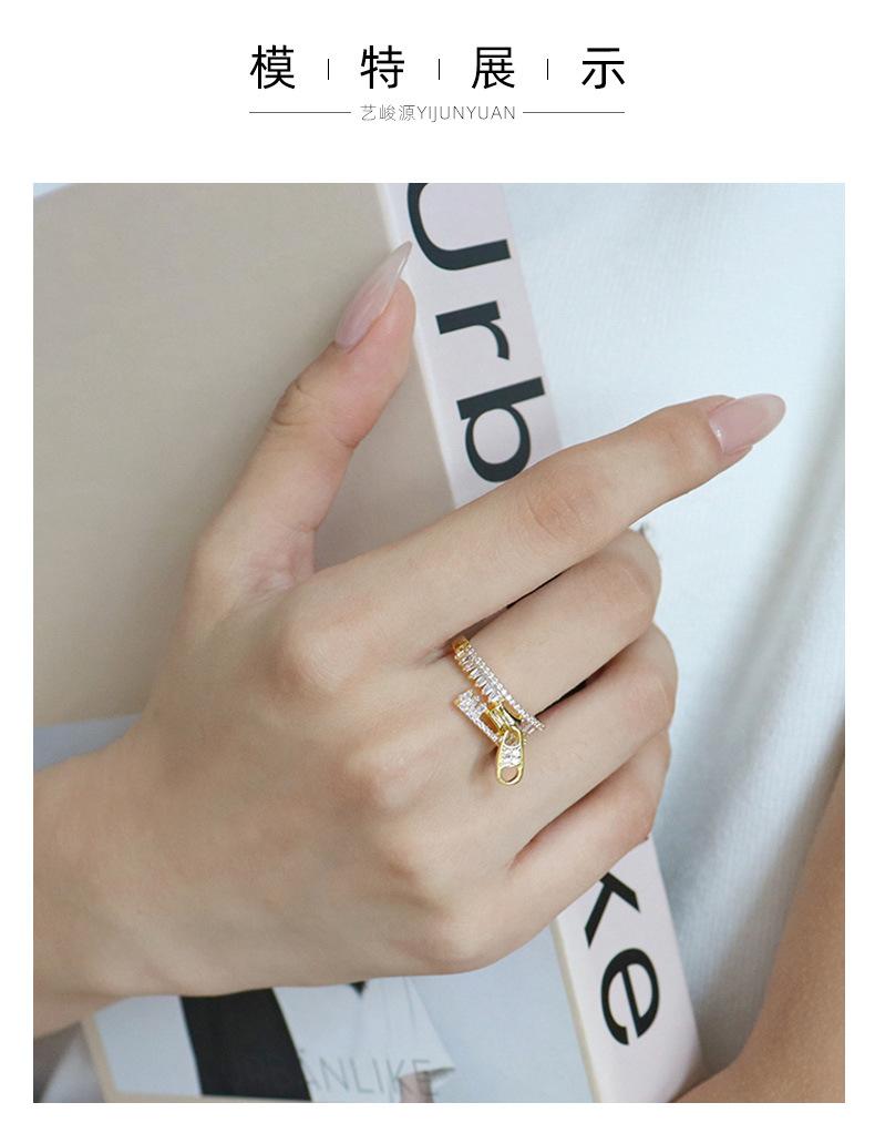Anillo Europeo y Americano Retro con Cremallera y Zircón para Mujer, Nicho de Alta Gama, Lujo Ligero, Moda Versátil, Anillo Exquisito con Sentido del Diseño