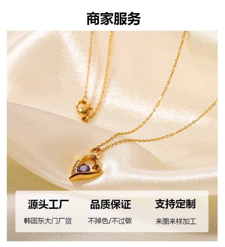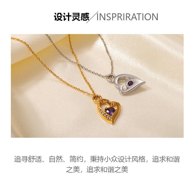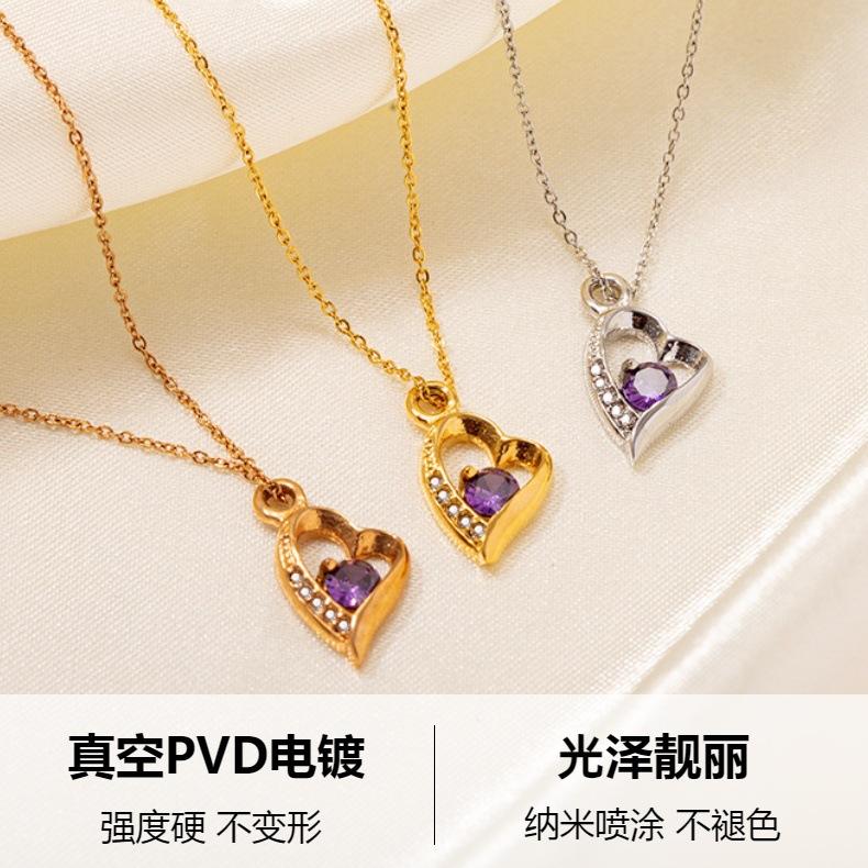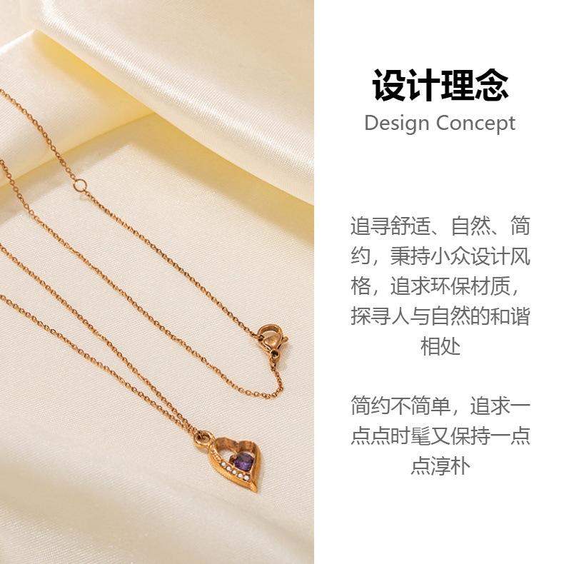 Collar Europeo y Americano de Moda con Zircón en Forma de Corazón de Acero Inoxidable para Mujer, de Alta Gama, Simple, Versátil, Joyería de Acero Titanio, No se Desvanece