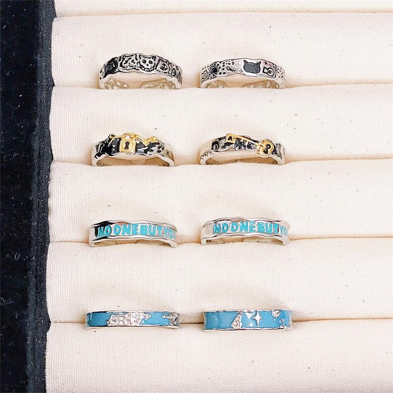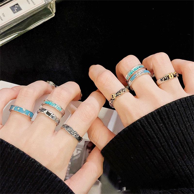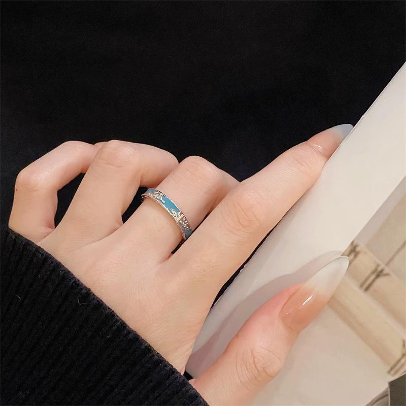 Anillo abierto con esmalte de color personalizado, diseño de nicho de alta calidad, estilo retro simple y moderno.