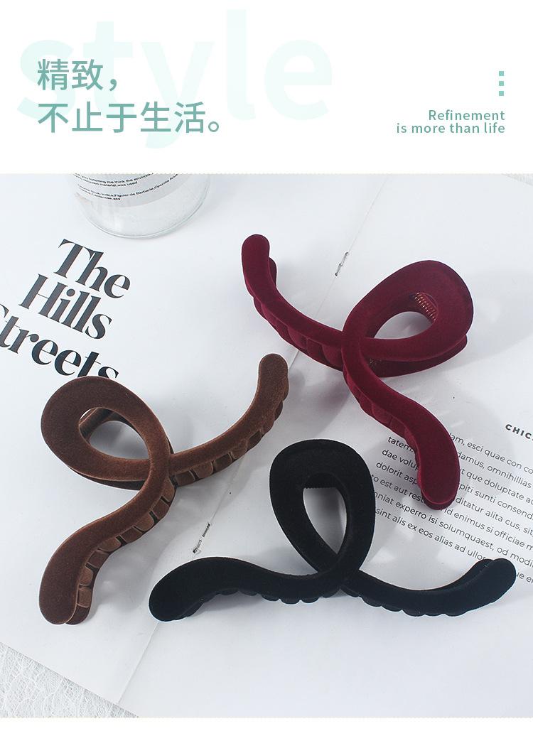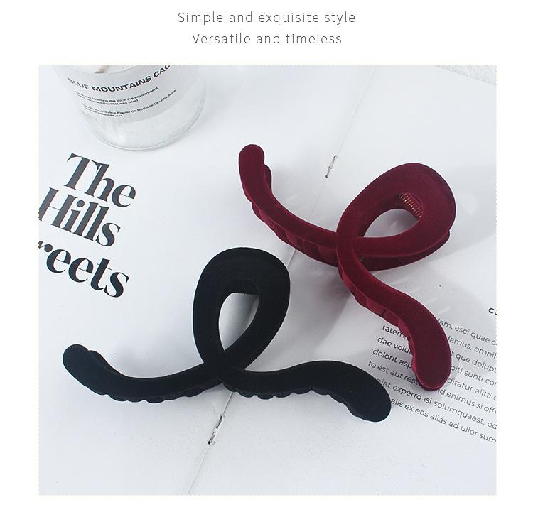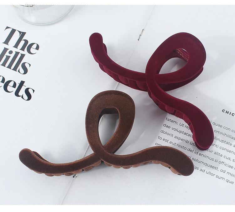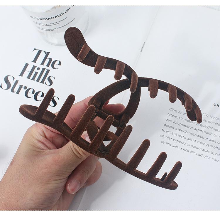 Horquilla elegante con ondas flocadas para otoño e invierno para mujer, de alta gama, elegante, sencilla, grande, con pinza para sujetar el pelo en la parte posterior, con forma de tiburón.