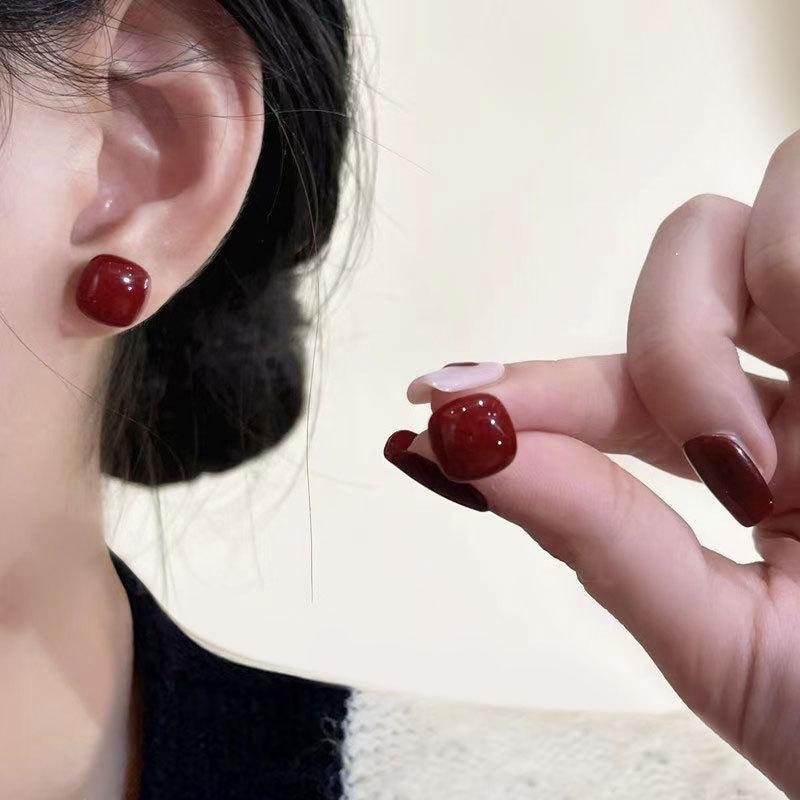 Pendientes cuadrados rojos retro Ankola para mujer, pendientes dulces, sencillos y de moda, pendientes de alta calidad y versátiles, suministro al por mayor