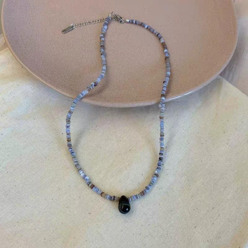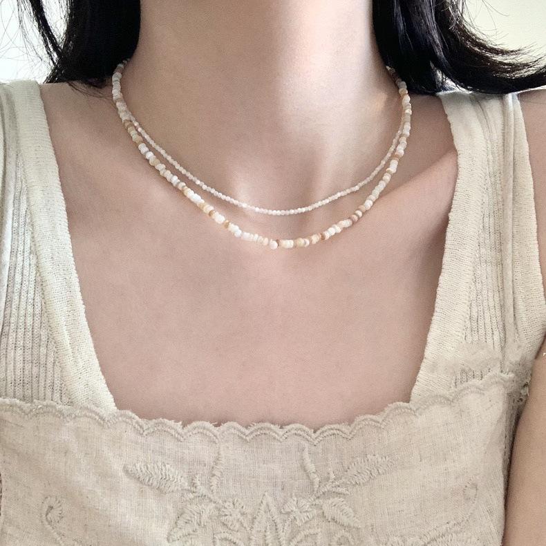 Nuevo Collar de Estilo Chino Superpuesto Irregular de Perla de Concha Marina de Piedra Natural Diseño Atmosférico Versátil Lujo Ligero Medio Antiguo para Otoño e Invierno