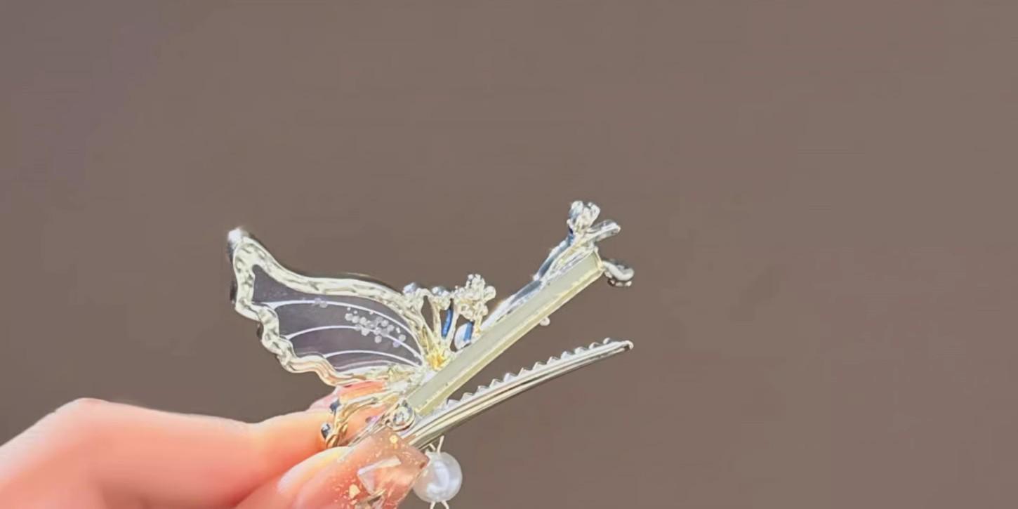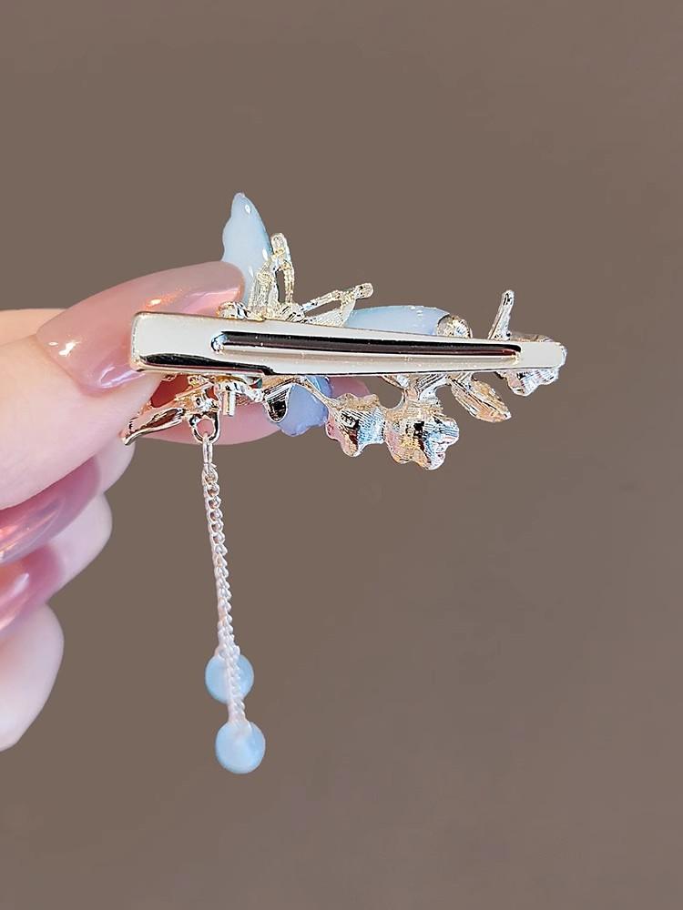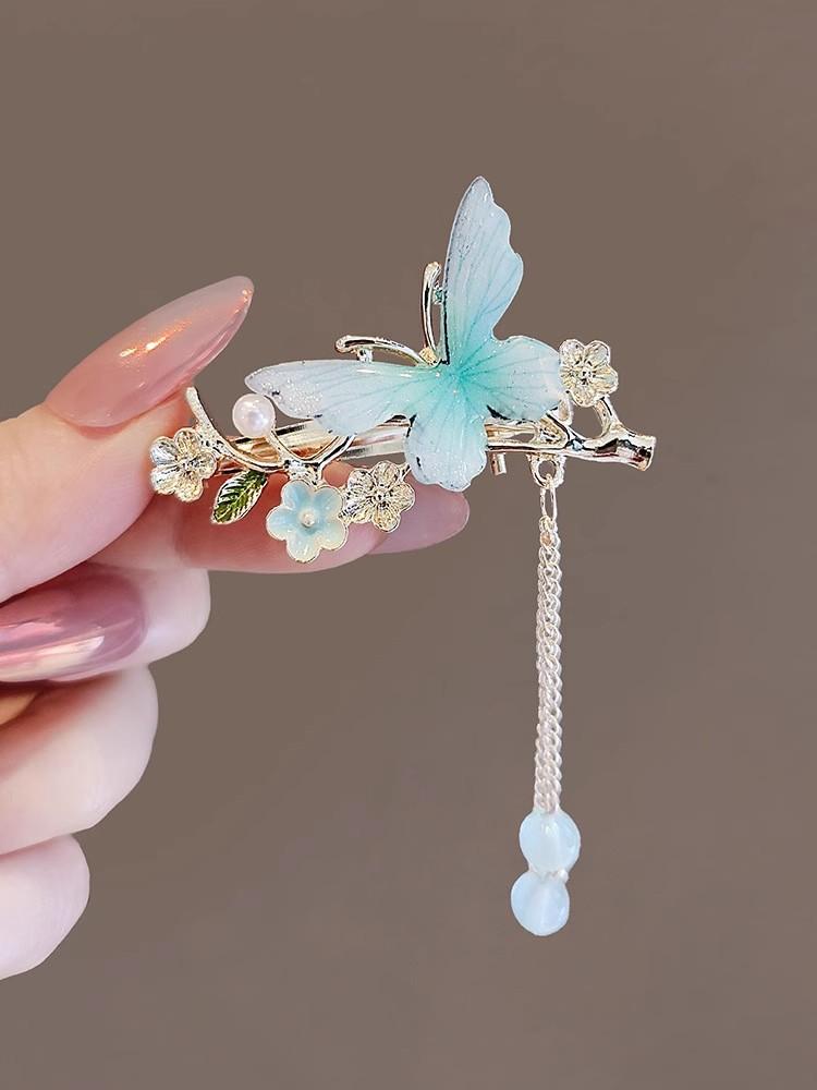 Horquilla con borla de mariposa degradada, diseño de nicho femenino, pinza de pico de pato, pinza lateral, flequillo, horquilla antigua, horquilla rota