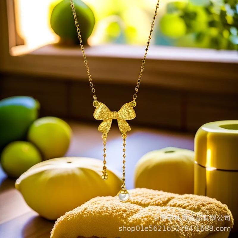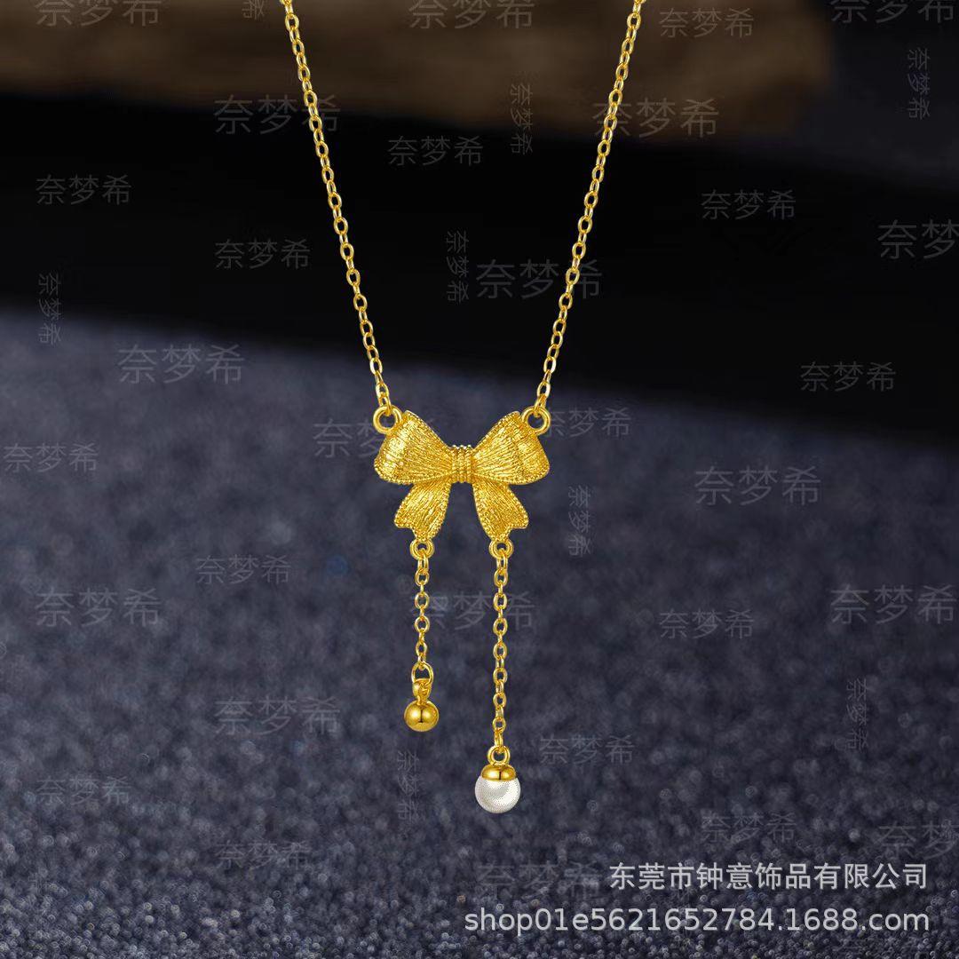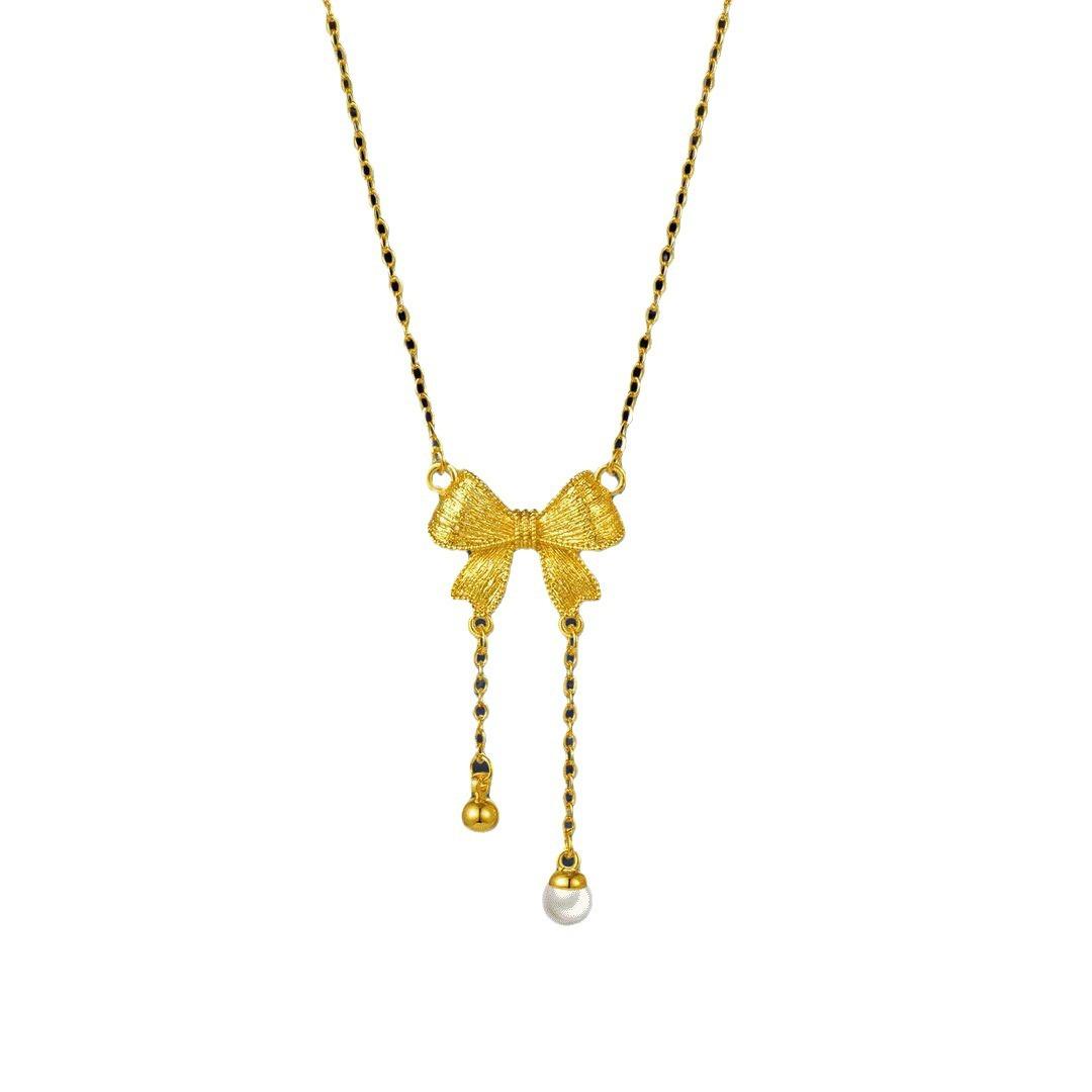 Collar con colgante de borla y lazo de aleación de cobre, cadena para clavícula, joyería personalizada, diseño de nicho, moda, combina con todo, ligero, de lujo.
