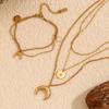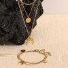 Collar con personalidad retro de temperamento europeo y americano, acero inoxidable chapado en oro de 18 quilates, luna, estrella, Bamang, pulsera de media luna de tres capas combinada