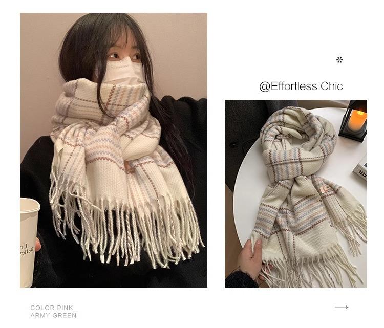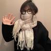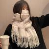 Bufanda blanca a cuadros para mujer, estilo coreano, de alta gama, de imitación de cachemira, cálida y gruesa, larga, de moda, para invierno