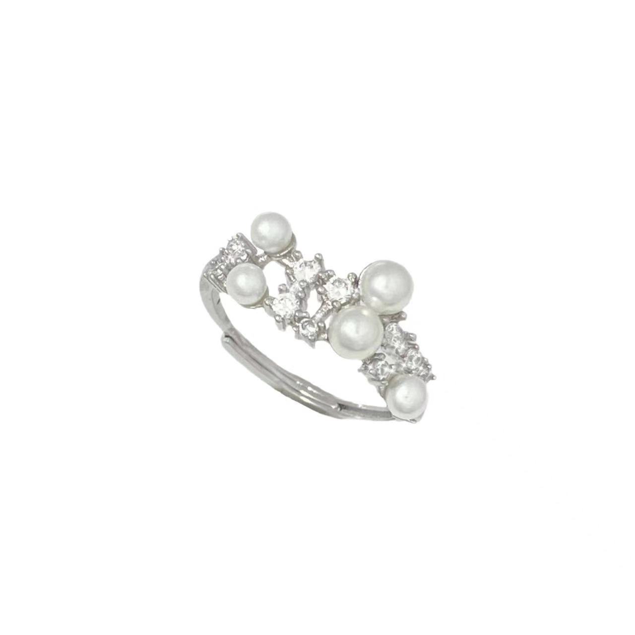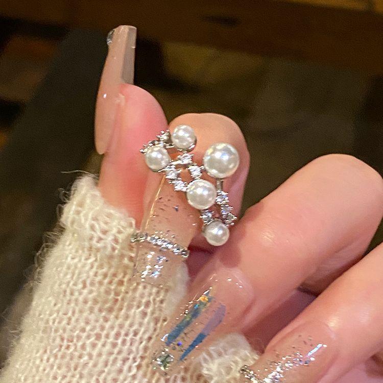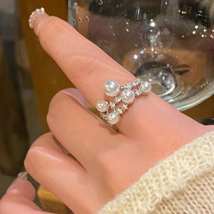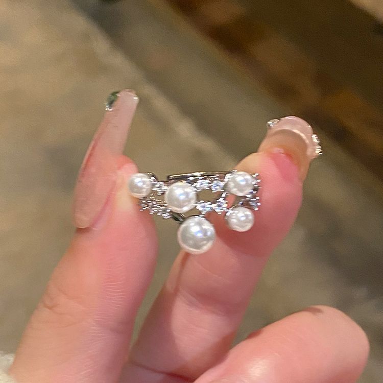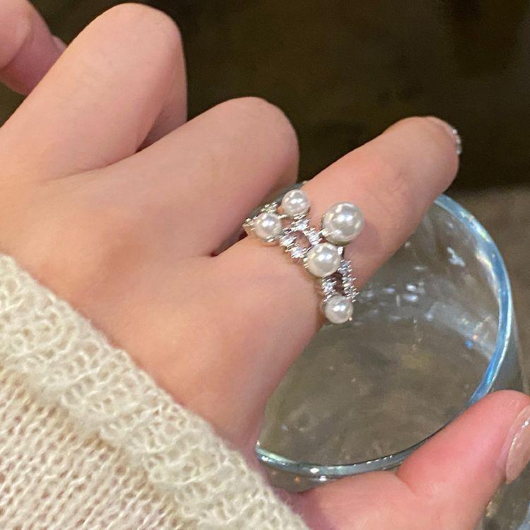 Anillo Abierto de Circonita Perla Meteoro para Mujer Estilo Frío Elegante Anillo para Dedo Diseño Nicho Anillo de Lujo Ligero