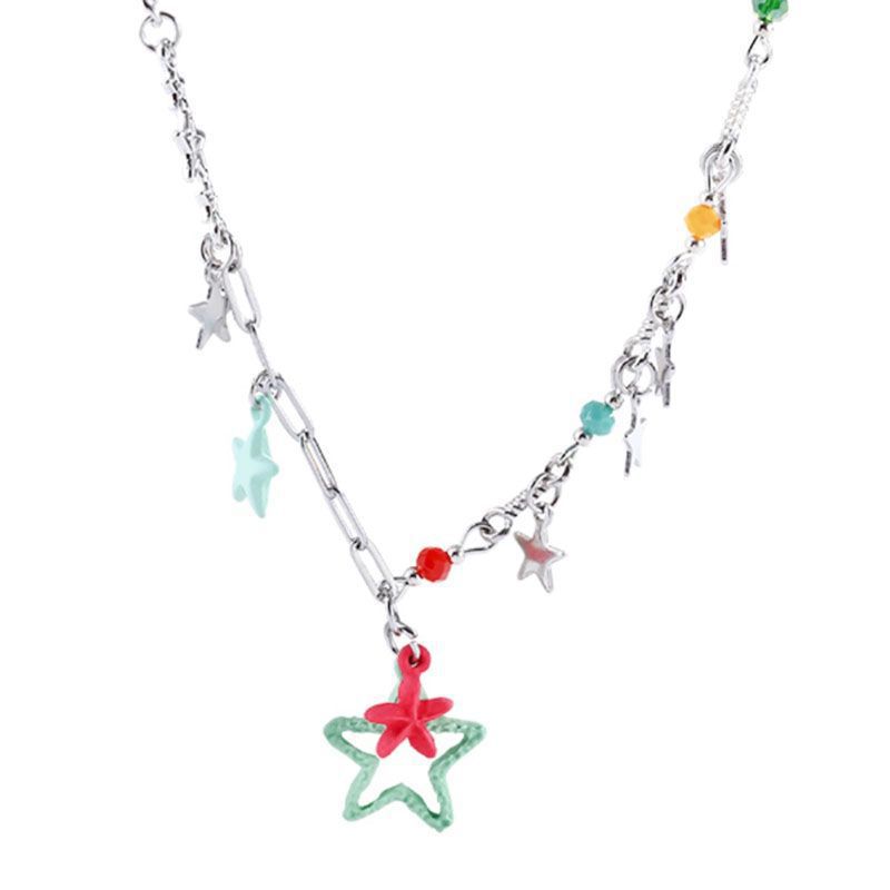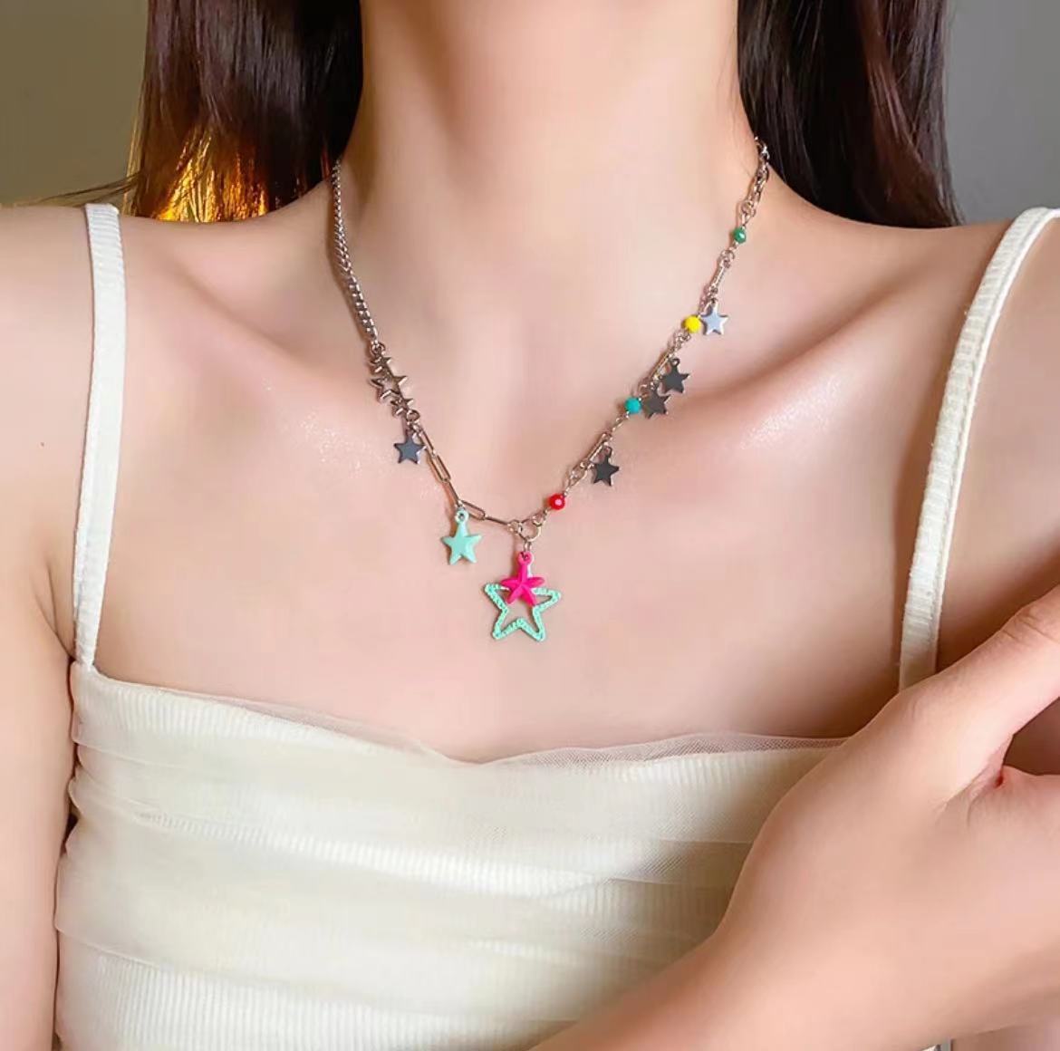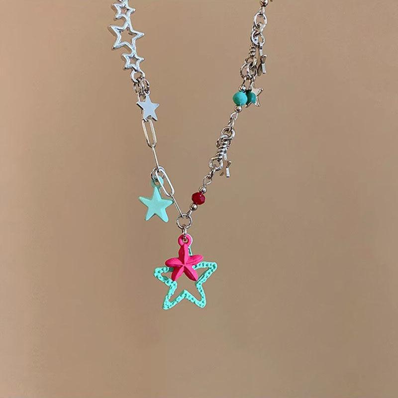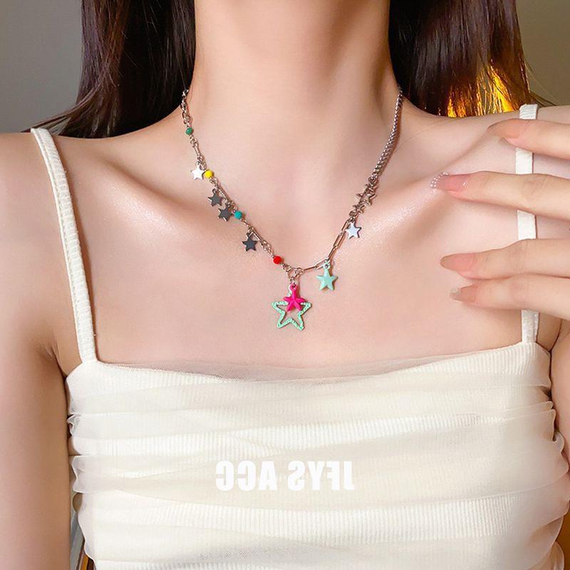 Collar de estrella de cinco puntas rosa y verde dopamina para mujer, diseño de nicho, estilo dulce y fresco, explosiones de verano, cadena para el cuello, cadena para clavícula.