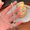 Collar francés de perlas con lazo de doble capa para mujer, elegante cadena de clavícula de lujo accesible, collar moderno con diamantes brillantes.