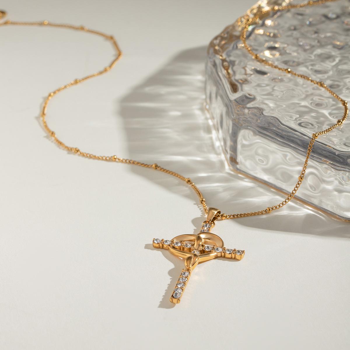 Collar con colgante de cruz de amor con diamantes blancos de acero inoxidable y oro de 18 quilates, joyería transfronteriza europea y americana, joyería para mujer al por mayor