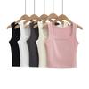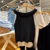 Camiseta sin mangas con tirantes y cuello descubierta para mujer, estilo BM, nueva camiseta adelgazante de color liso que combina con todo.
