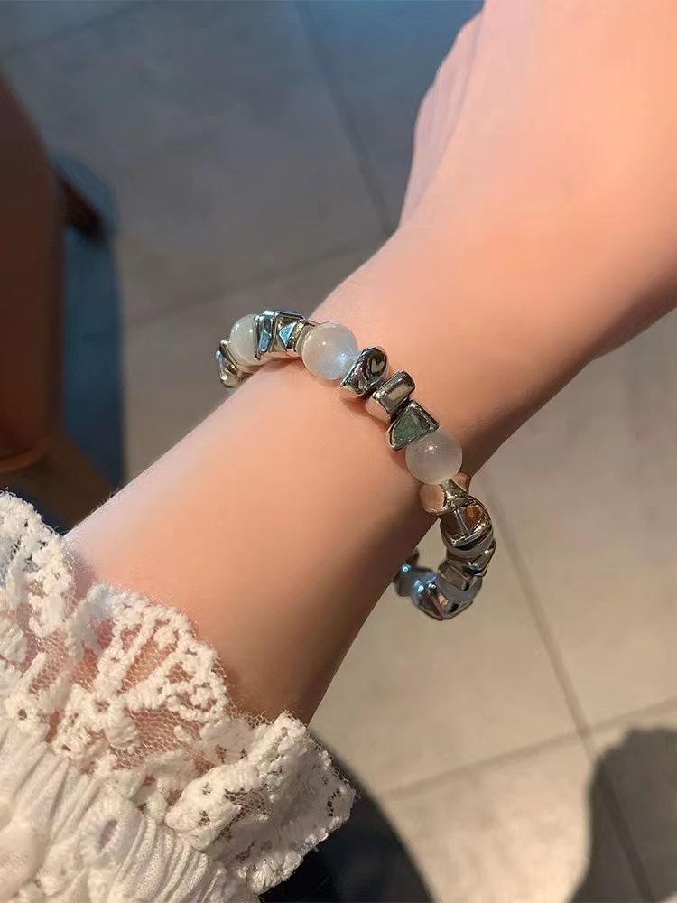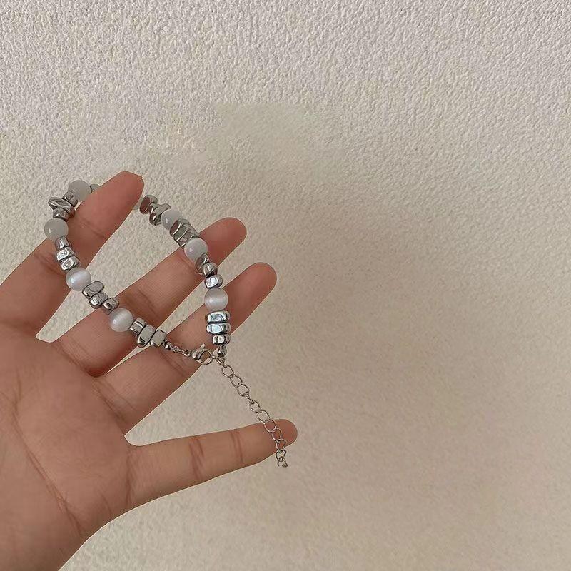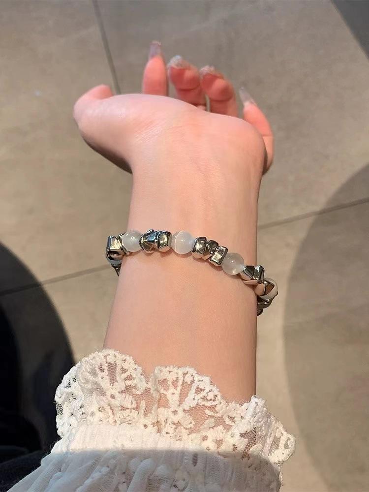 Pulsera de Acero de Titanio Ojo de Gato para Hombre y Mujer Costura Moda Personalidad Tendencia Urbana Pulsera Ajustable 2025 Nuevo Estilo
