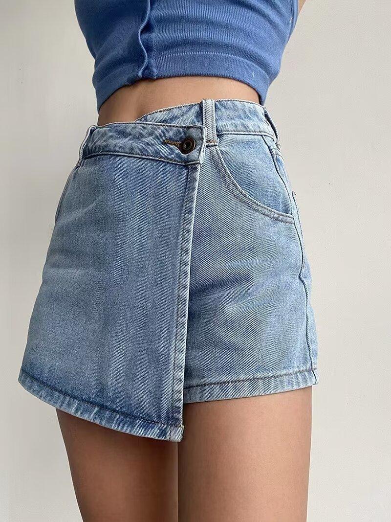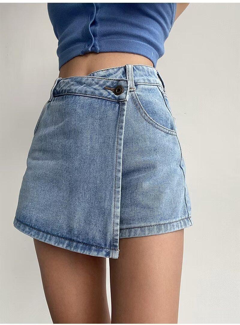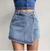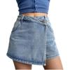 Falda corta vaquera irregular de cintura alta para mujer, falda de verano de talla grande con diseño adelgazante, falda de corte A con aberturas laterales