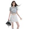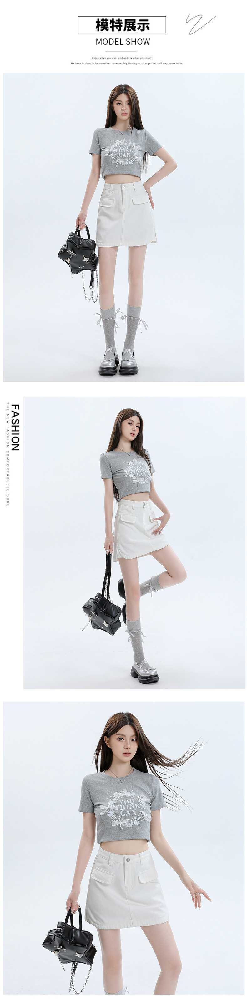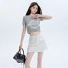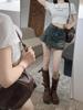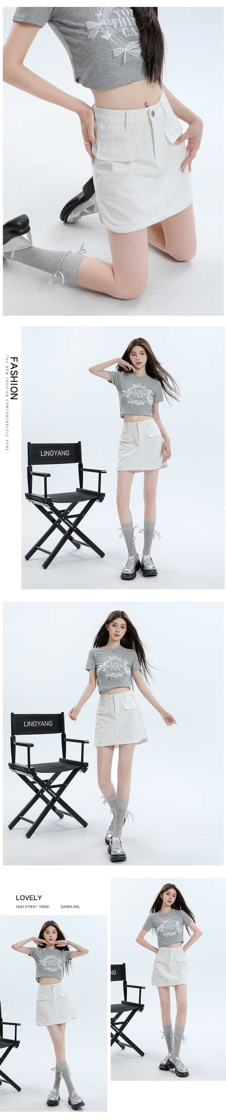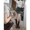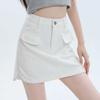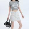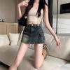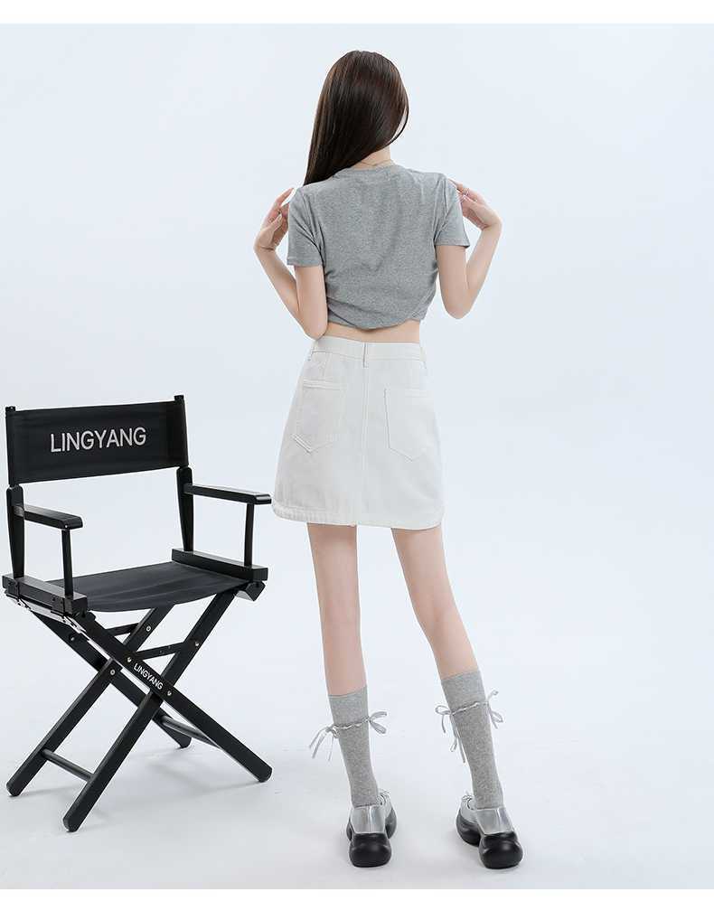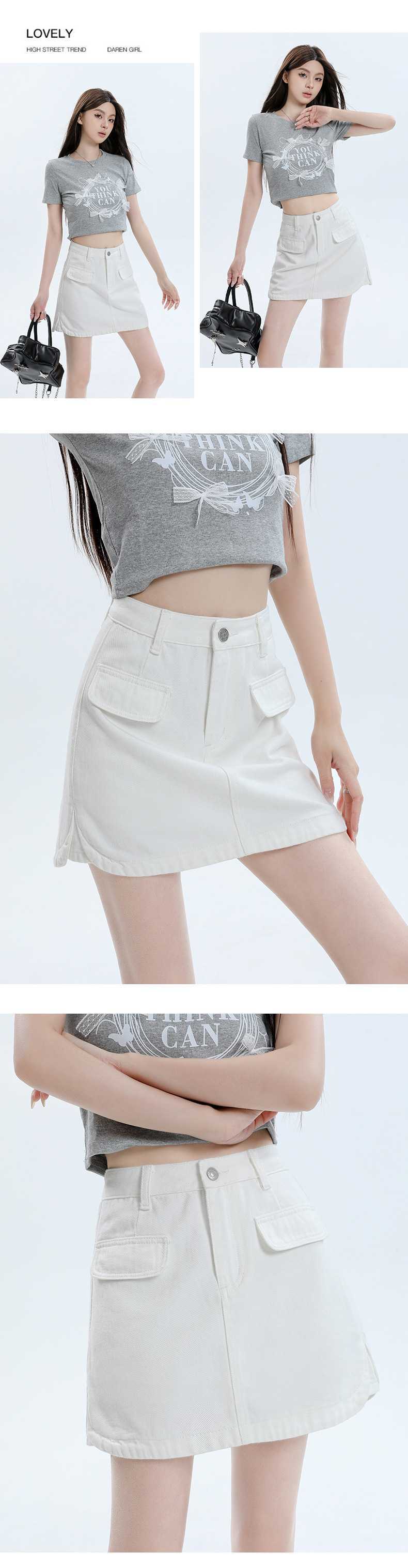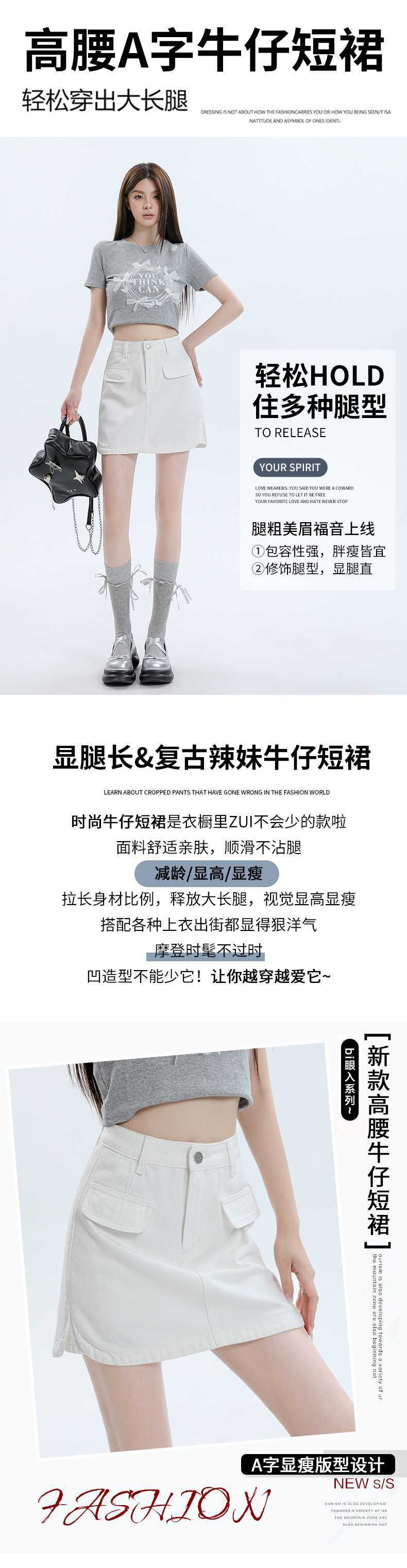 Vestido de verano para mujer, estilo americano, retro, blanco, de cintura alta, con falda vaquera irregular de media longitud y forro en la cadera.