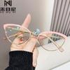 Nuevas monturas de gafas antiazules transfronterizas, tendencia de moda, monturas de gafas miopes lisas europeas y americanas de metal con forma de ojo de gato.