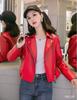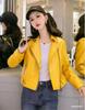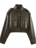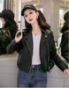 Abrigo de Otoño Chaqueta de Cuero para Mujer Estilo Coreano Moderno Juvenil Slim Cuello Alto Moda Casual Chaqueta Top de Cuero PU Ropa de Mujer