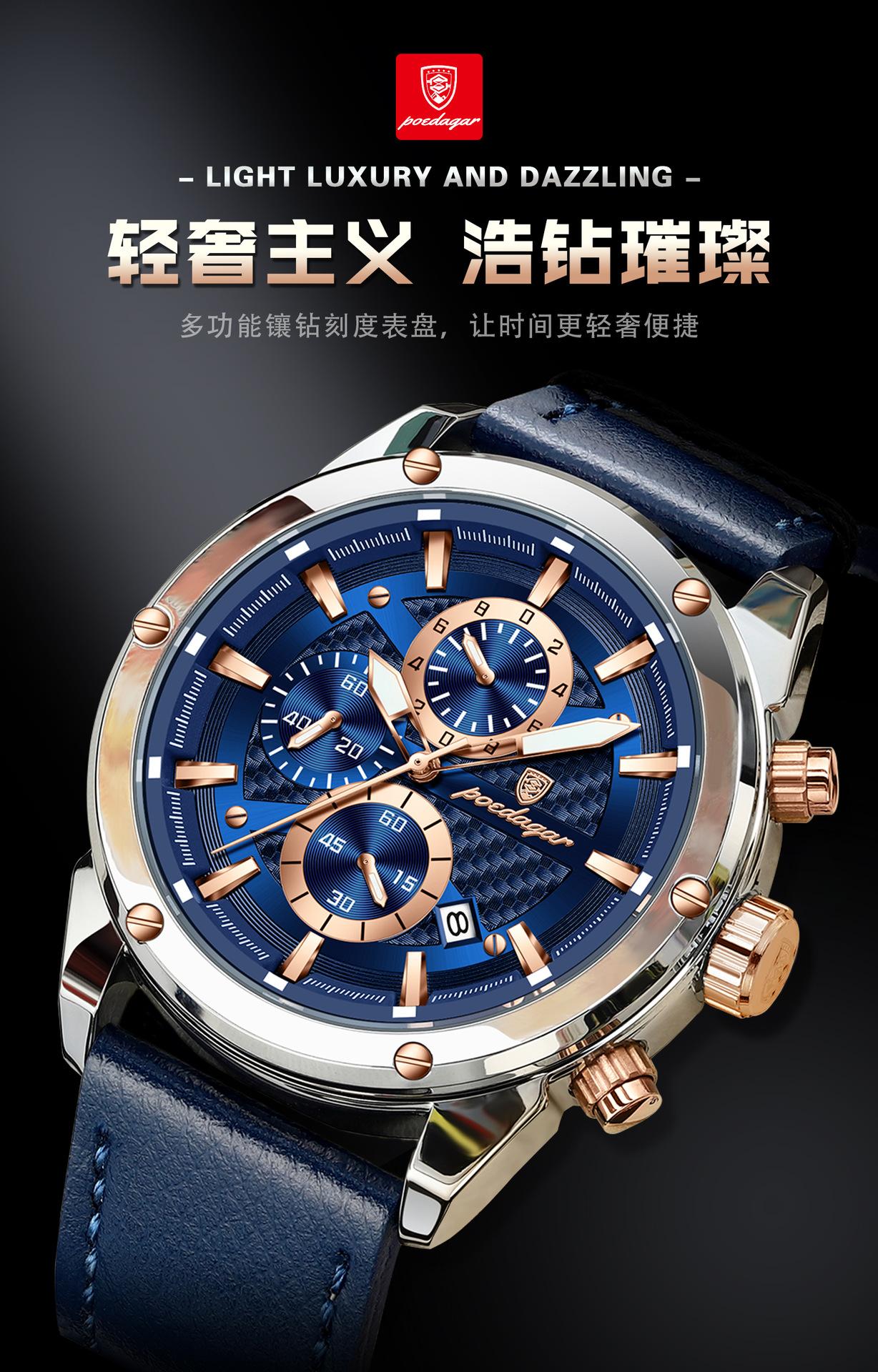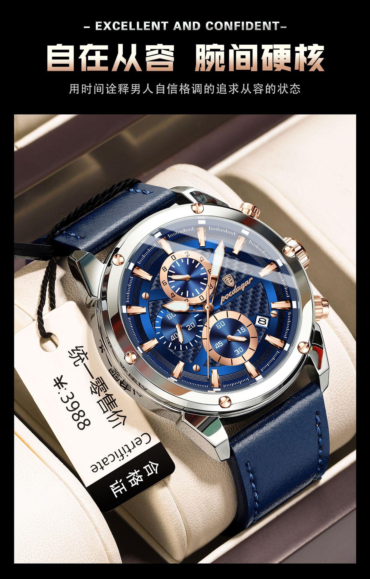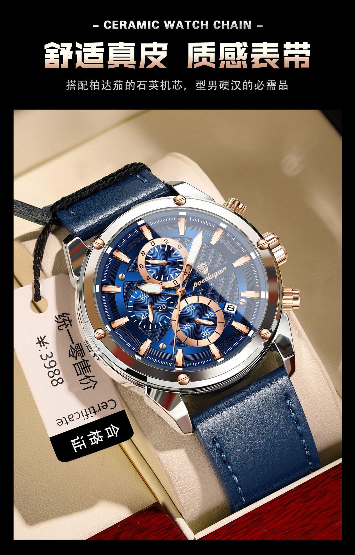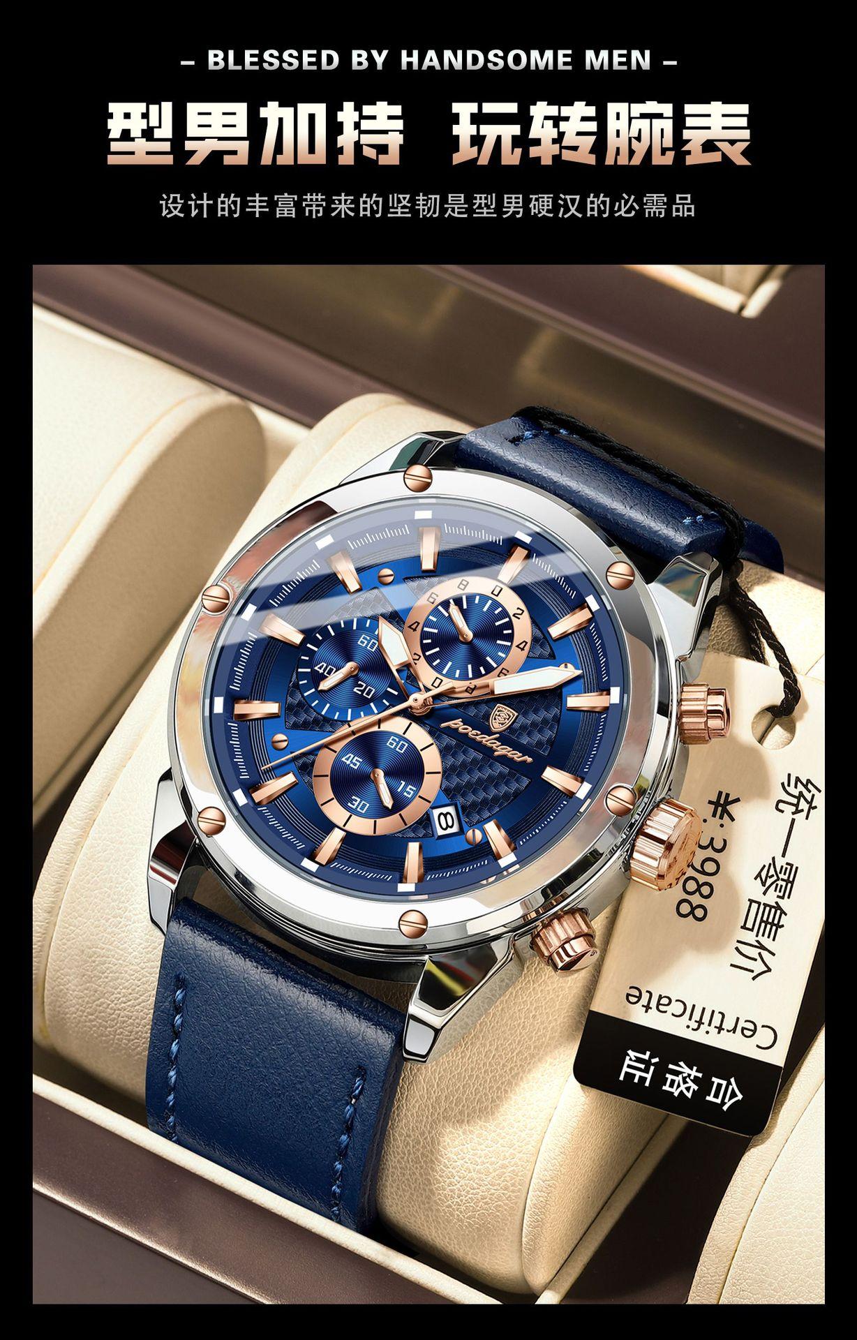 Reloj multifuncional de marca suiza para hombre, nuevo reloj de cuarzo de moda casual, explosiones de comercio exterior en vivo, una generación de cabello