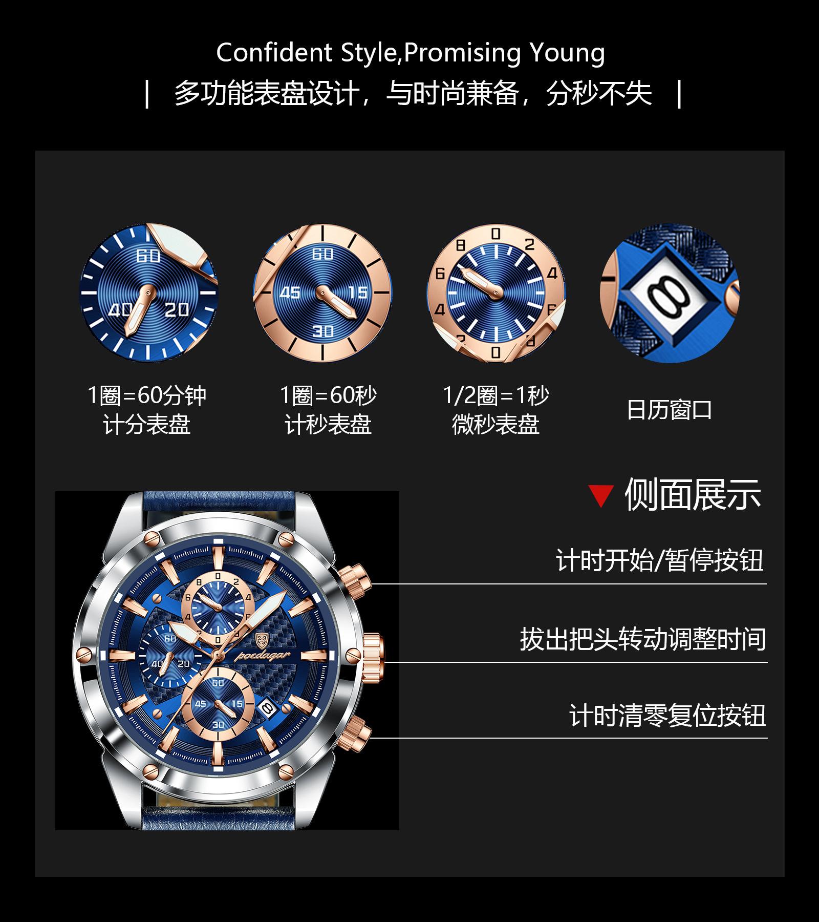 Decoration, Luminous, Chronograph, Calendar, Countdown, Small three needles, Speed measurement, Other